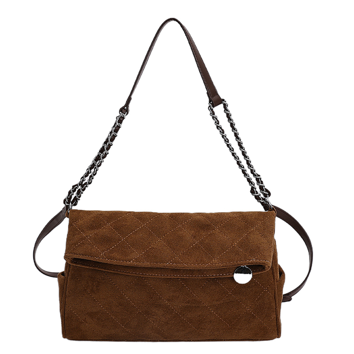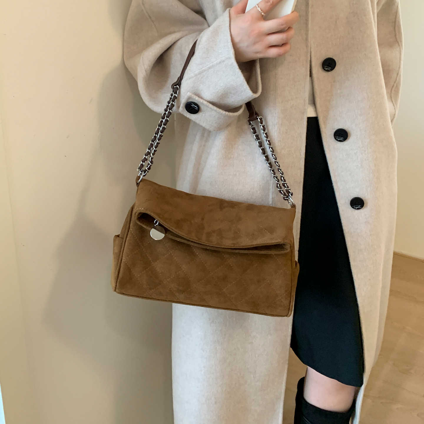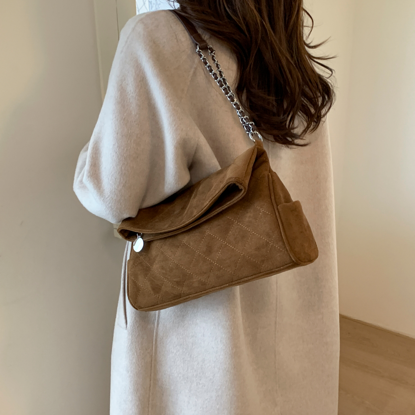 美拉德韩系菱格绒面托特包2025冬新款大容量小香风链条单肩腋下包