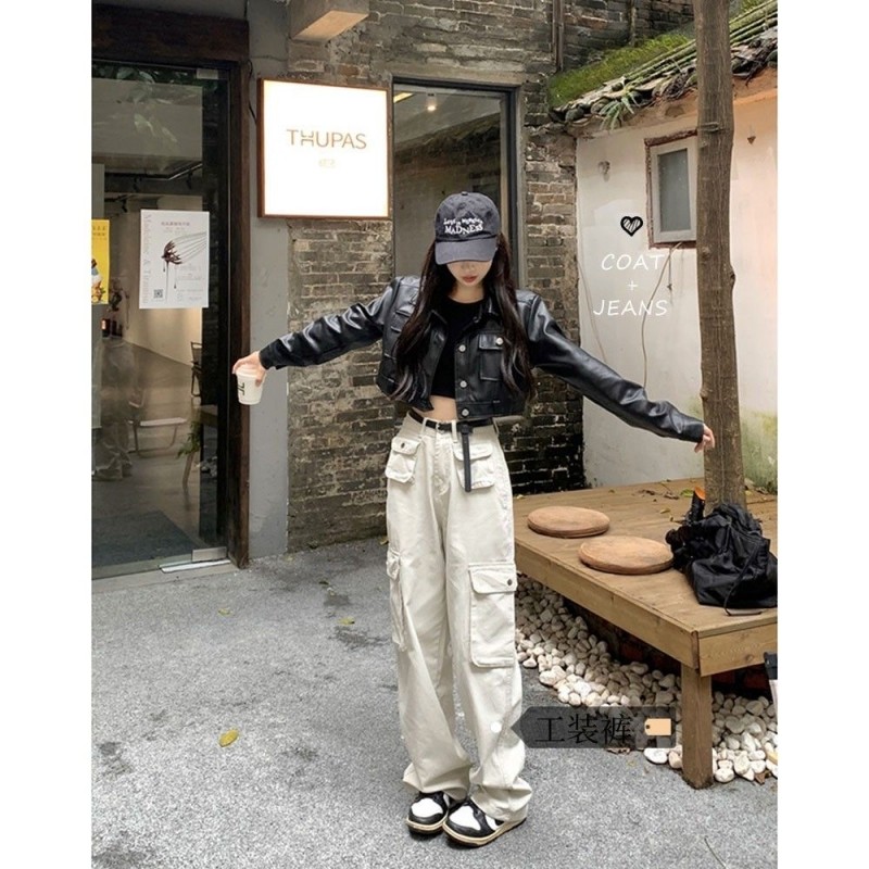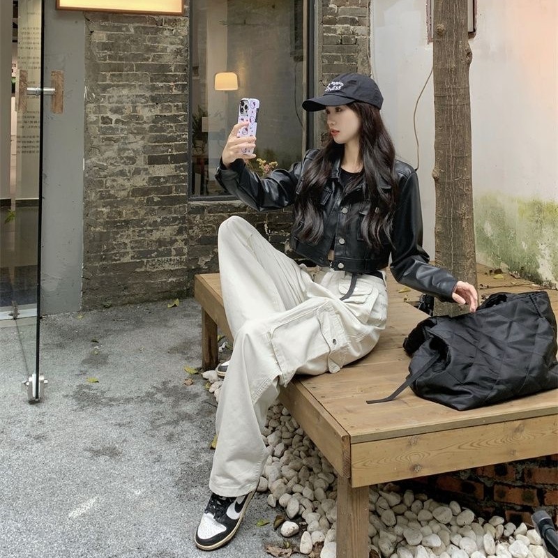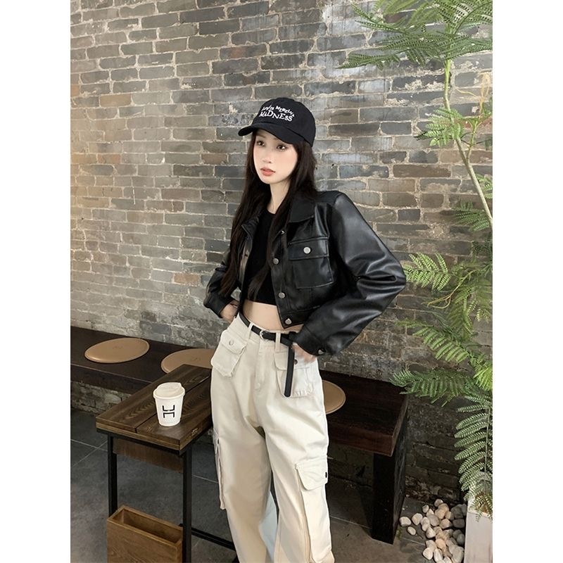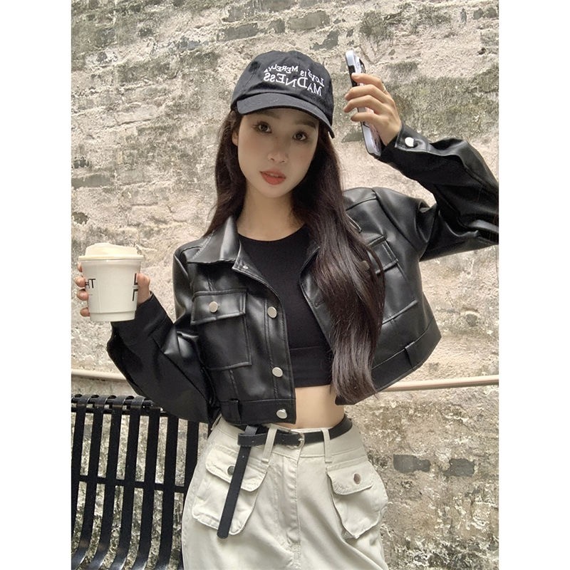 美式高街短款pu皮夹克机车上衣春秋小个子酷飒风宽松皮衣外套女