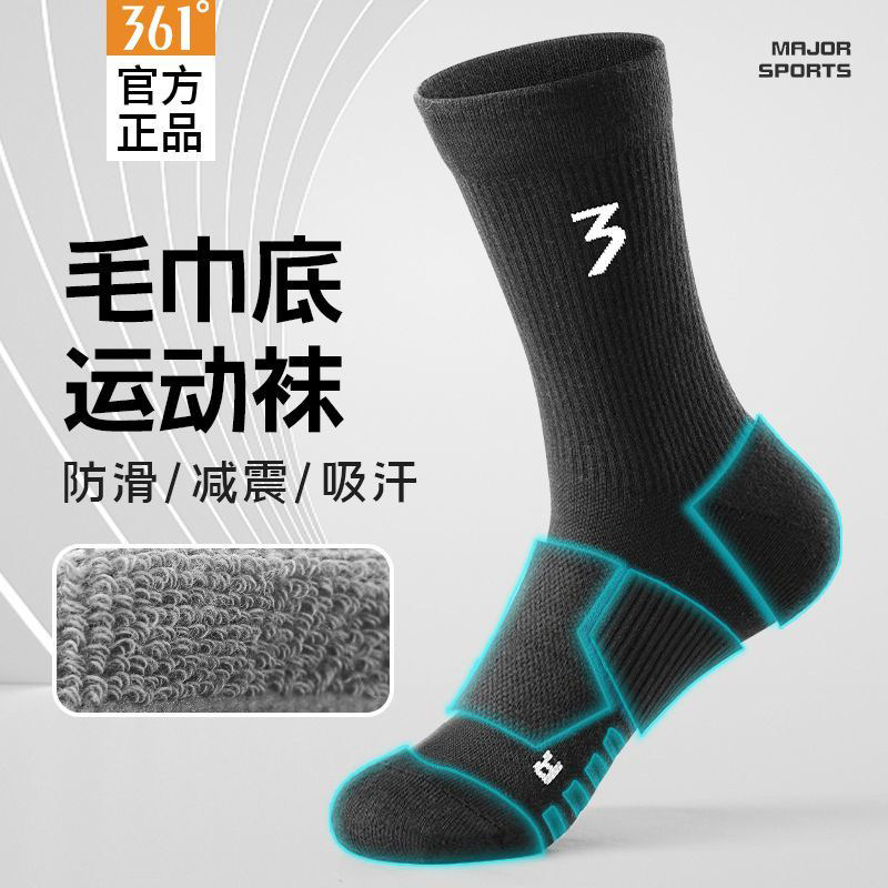 361男袜官方正品专业运动篮球袜男士透气吸汗跑步袜子毛巾底长袜