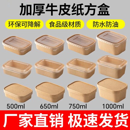 一次性餐盒牛皮纸长方形外卖快餐打包盒野餐饭盒环保便当沙拉盒