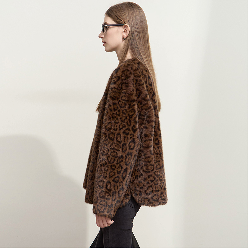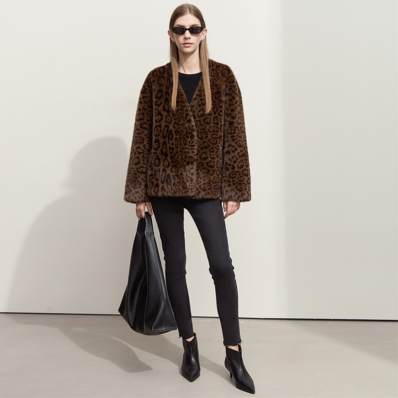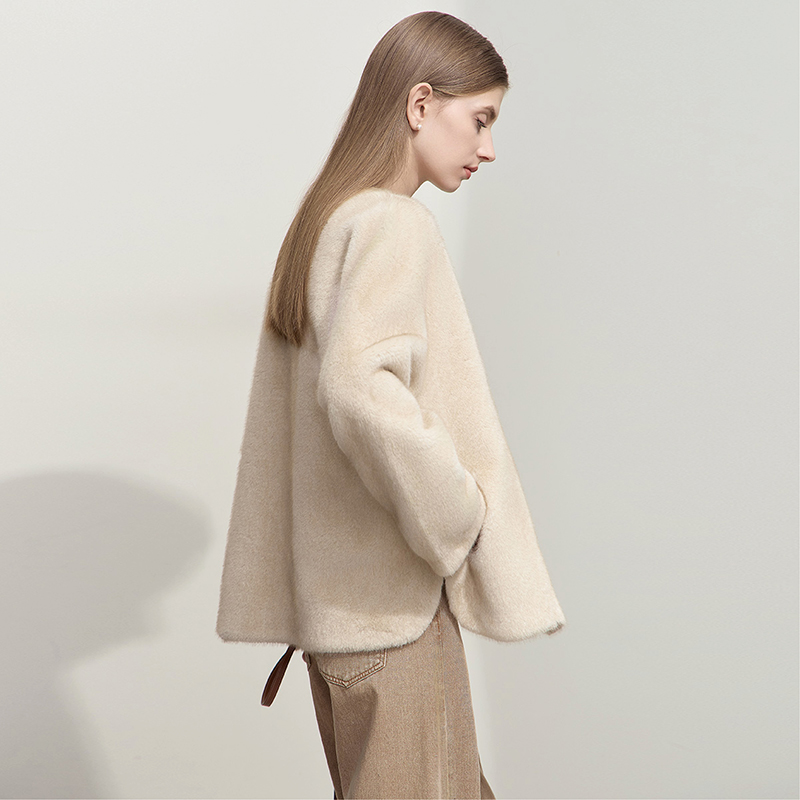 Amii【复古轻奢】冬款V领仿水貂毛女宽松温暖毛绒外套