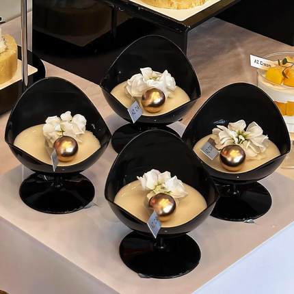 冰淇淋塑料杯高脚蛋糕杯酸奶慕斯杯一次性布丁杯黑色创意甜品杯子