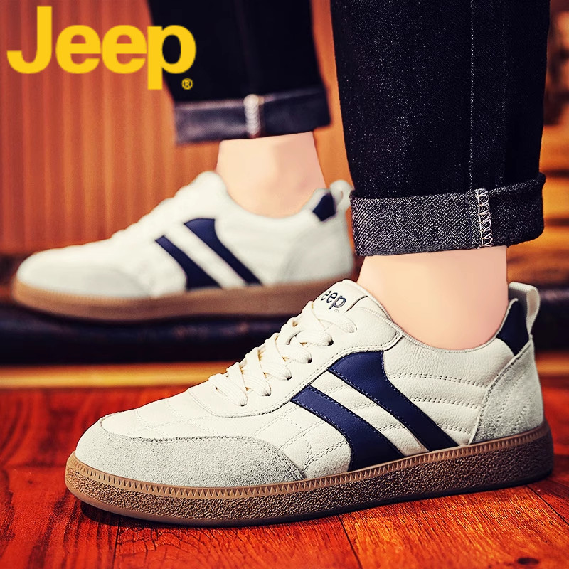 jeep吉普板鞋男款秋季2025新款休闲百搭小白鞋子男士真皮德训男鞋