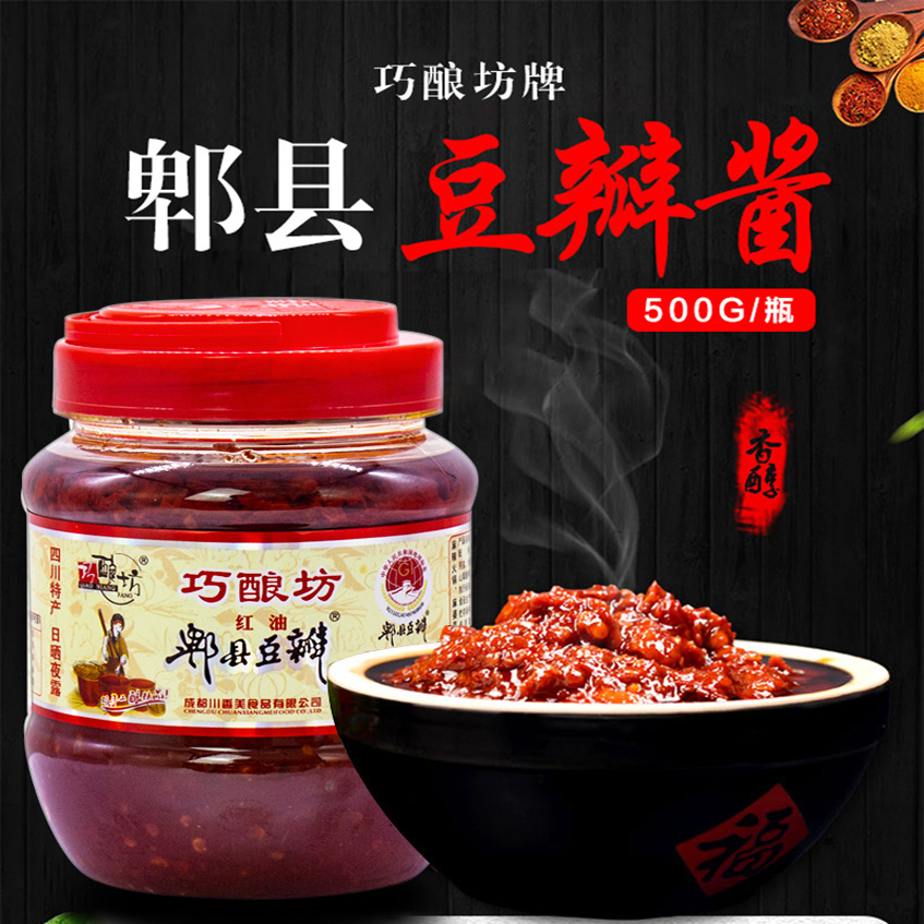 巧酿坊红油郫县豆瓣500g*2罐川香美辣椒酱炒菜酱香调味料四川特产