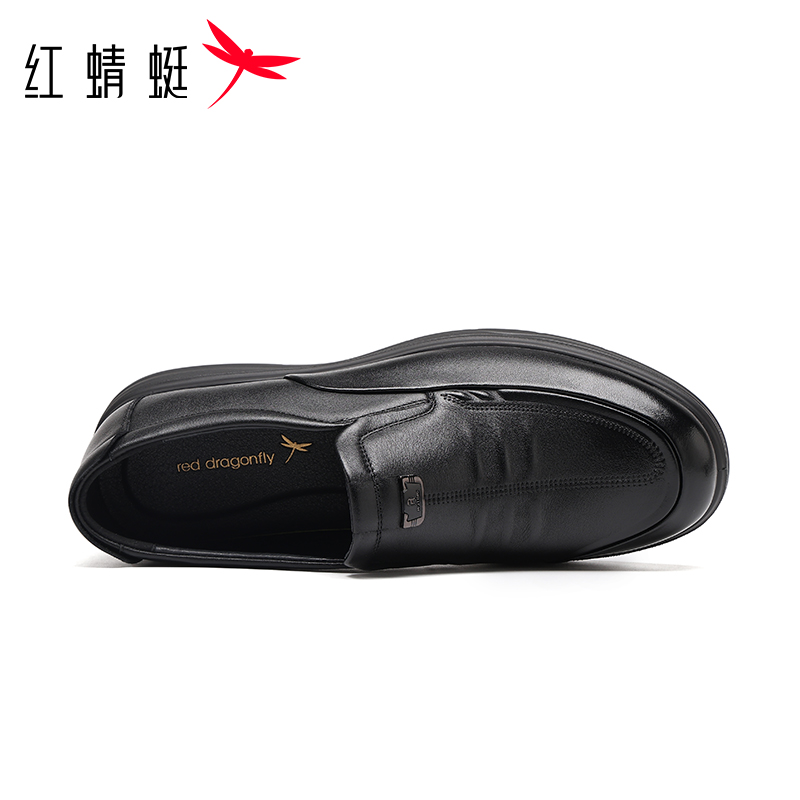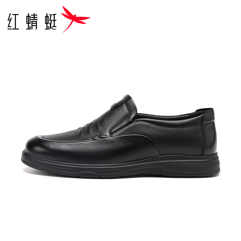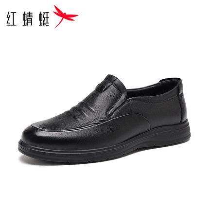 红蜻蜓男休闲皮鞋透气懒人小皮鞋一脚蹬防滑中老年软底头层牛皮鞋