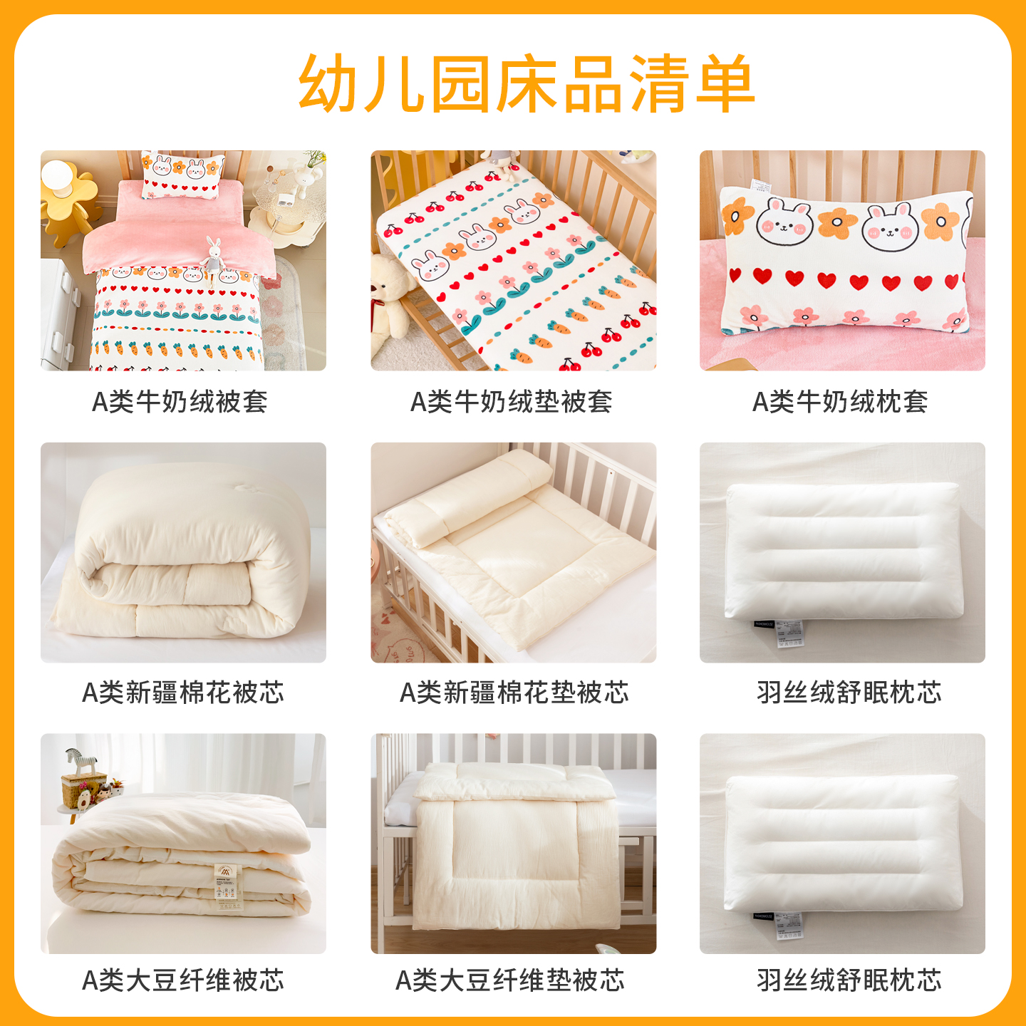 A类加厚牛奶绒珊瑚幼儿园被褥子三件套专用儿童小学生午睡六件套