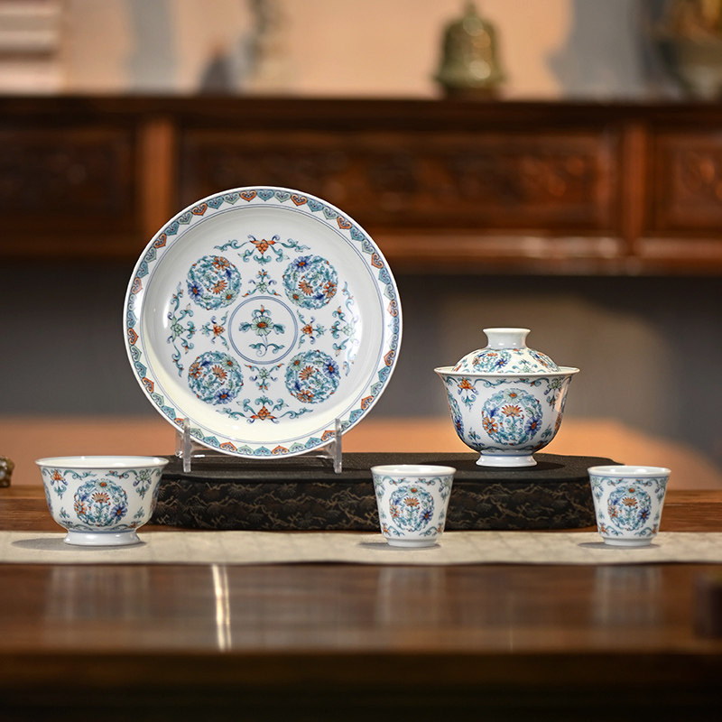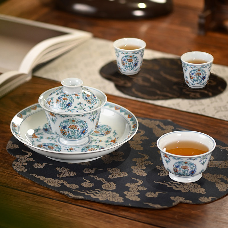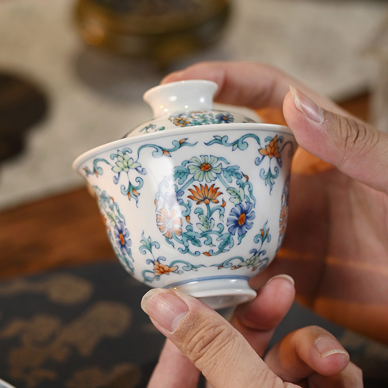 主人杯茶杯功夫茶杯个人品茗杯景德镇青花瓷釉下彩五彩雏菊薄胎杯