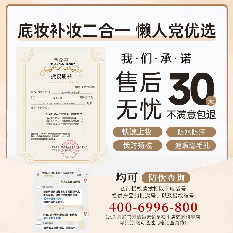 毛戈平小金扇粉饼气垫散粉定妆持久控油大白饼补妆蜜粉饼旗舰正品