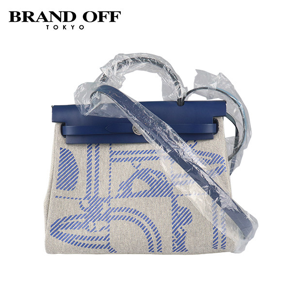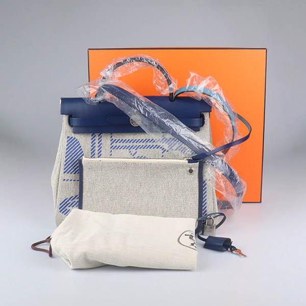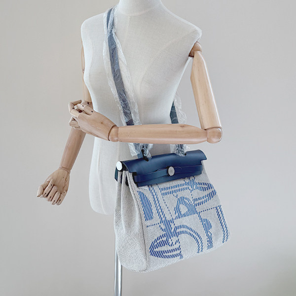 中古95新HERMES(爱马仕)HERBAG限量款法国蓝/米色TOILE H单肩包