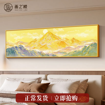 背靠金山卧室床头装饰画高档大气旺财聚财风水画夫妻主卧房间壁画