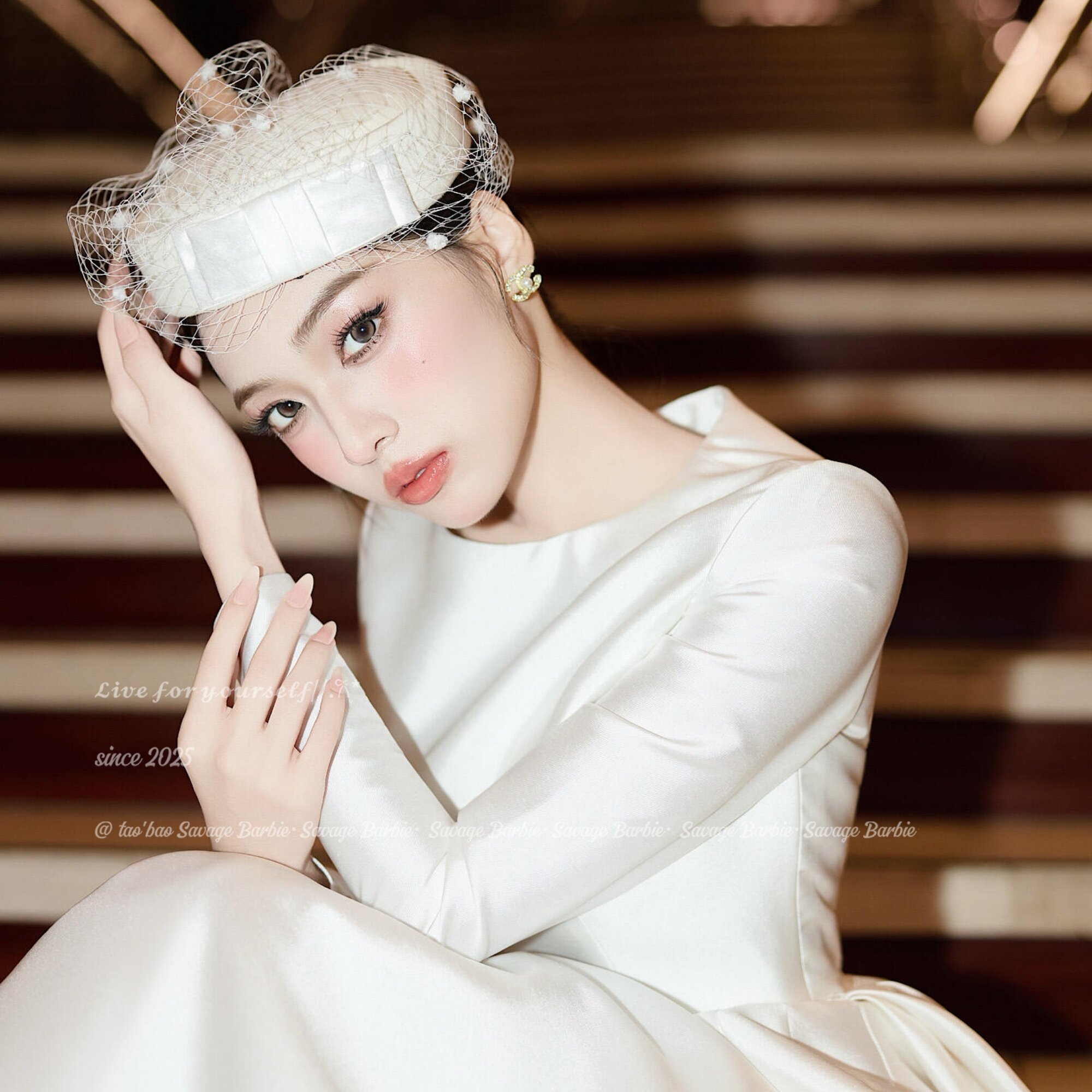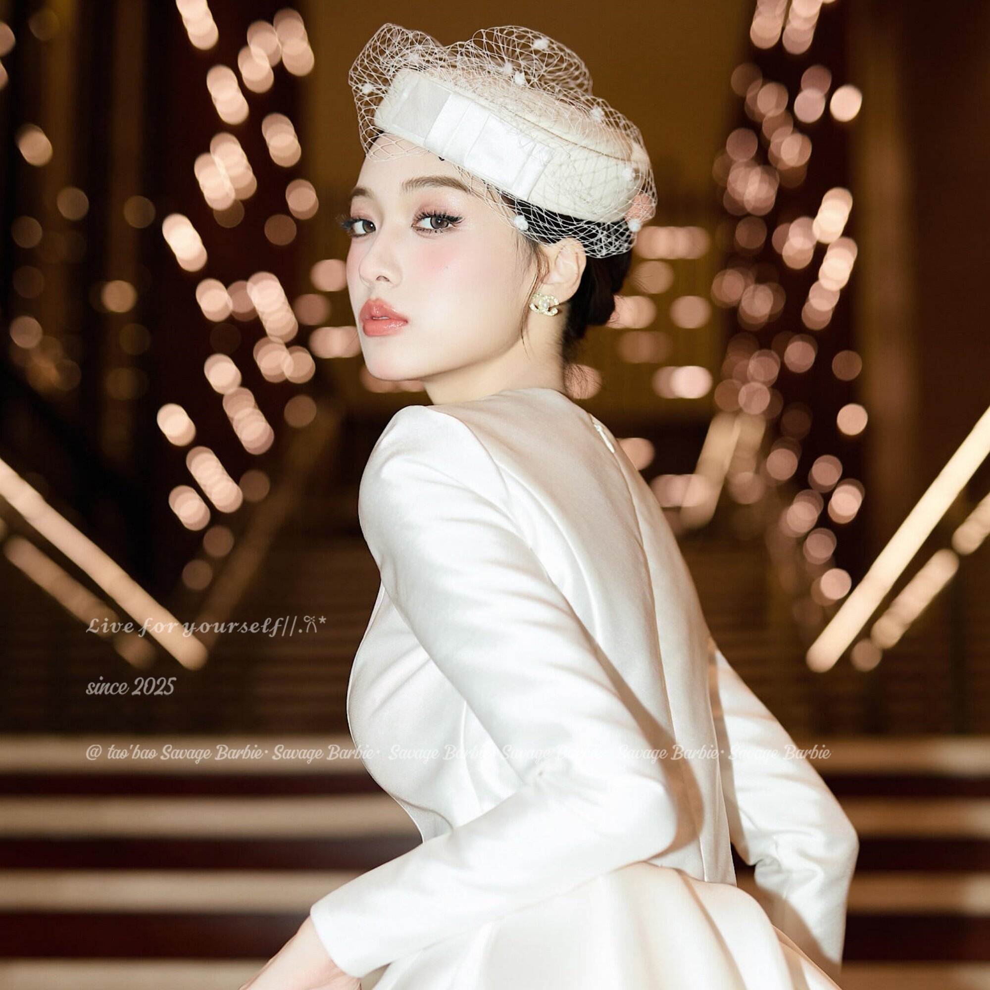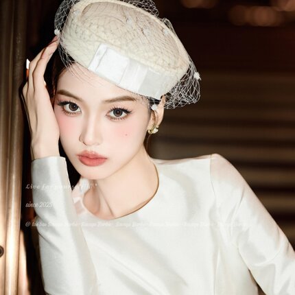 复古法式赫本风白色网纱礼帽