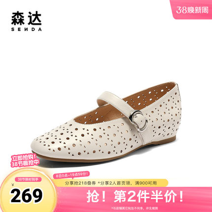 森达玛丽珍鞋女款夏新商场同款镂空透气平底单鞋XMB01BQ5