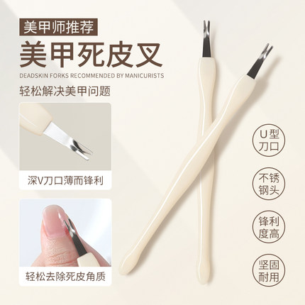 美甲死皮叉铲超锋利v型双头死皮推挫去死皮角质修指甲边倒刺工具
