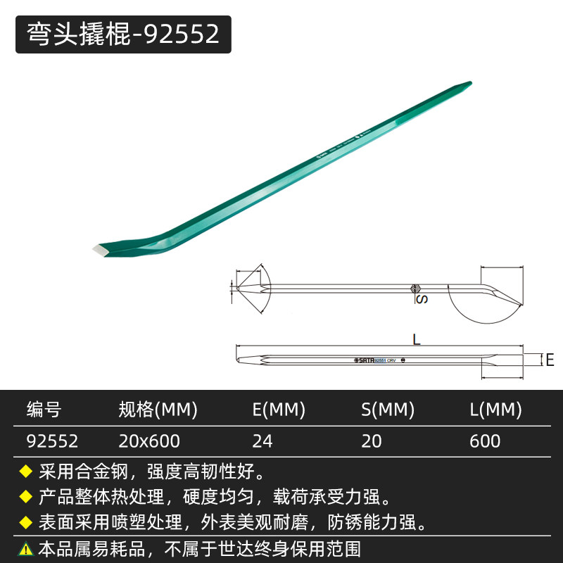 新款世达弯头撬棍起订撬棒汽车轮胎撬杠钢钎金属拆机撬棒9255包邮