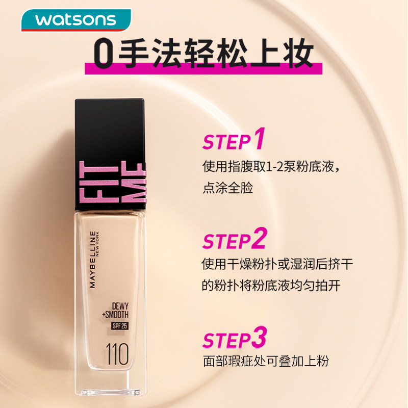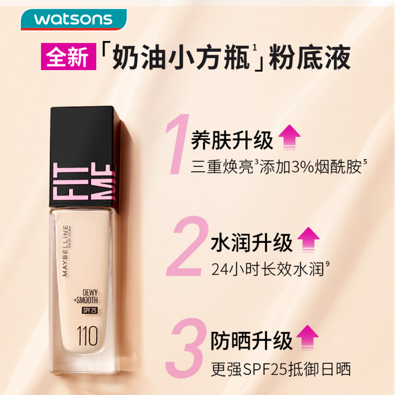 屈臣氏美宝莲柔焦小方瓶纽约fitmepro定制防晒水润版粉底液服帖