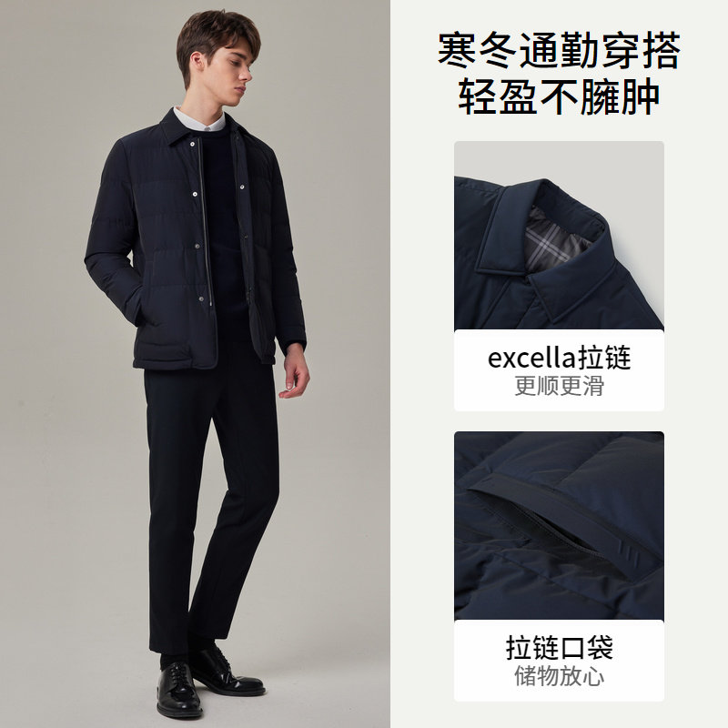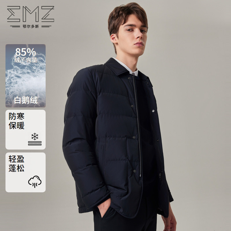 【白鹅绒】emz鄂尔多斯秋冬男士商务休闲轻量保暖翻领羽绒服外套