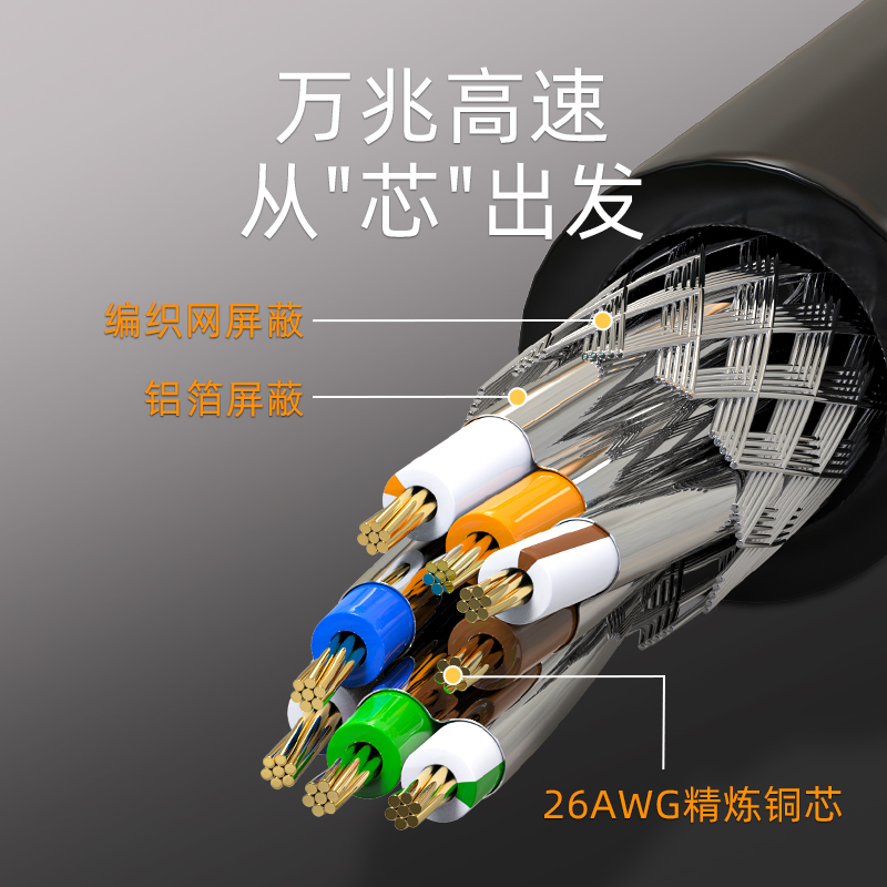 秋叶原网线超六类万兆家用成品跳线CAT6A电脑宽带路由器连接线5米