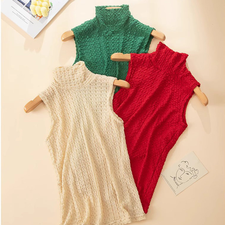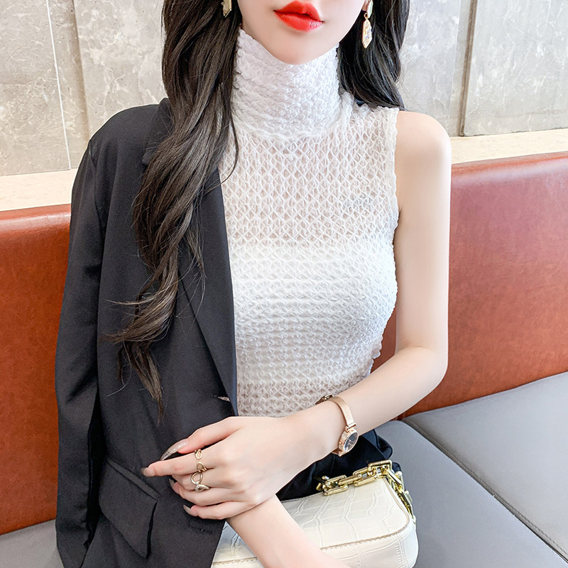 高领无袖背心女2023秋季新款薄款黑色气质弹力蕾丝打底衫内搭上衣
