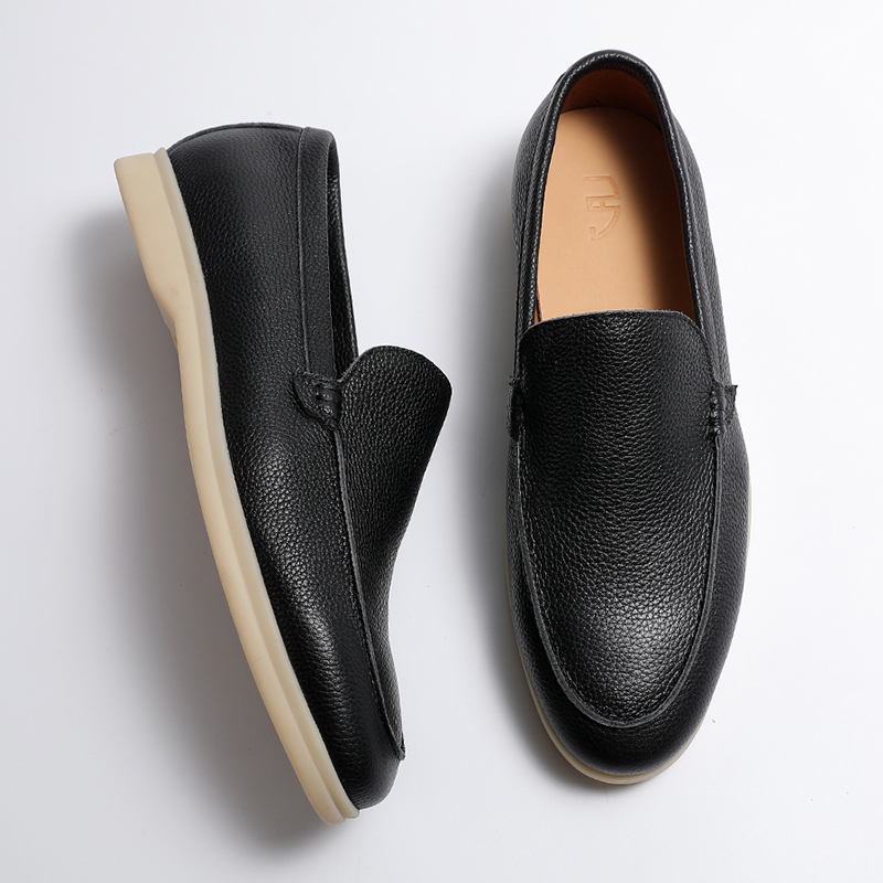 弓长梦男鞋乐福鞋英伦商务手工真皮休闲皮鞋一脚蹬白色豆豆鞋夏季