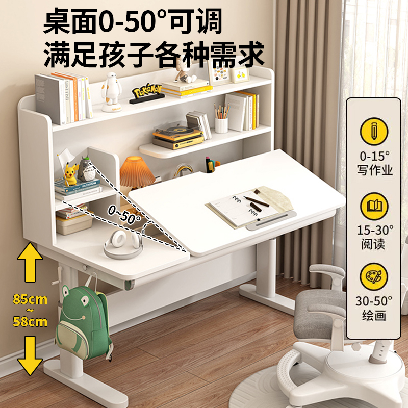 象森蒙儿童学习桌家用小学生书柜一体写字桌椅套装可升降实木书桌