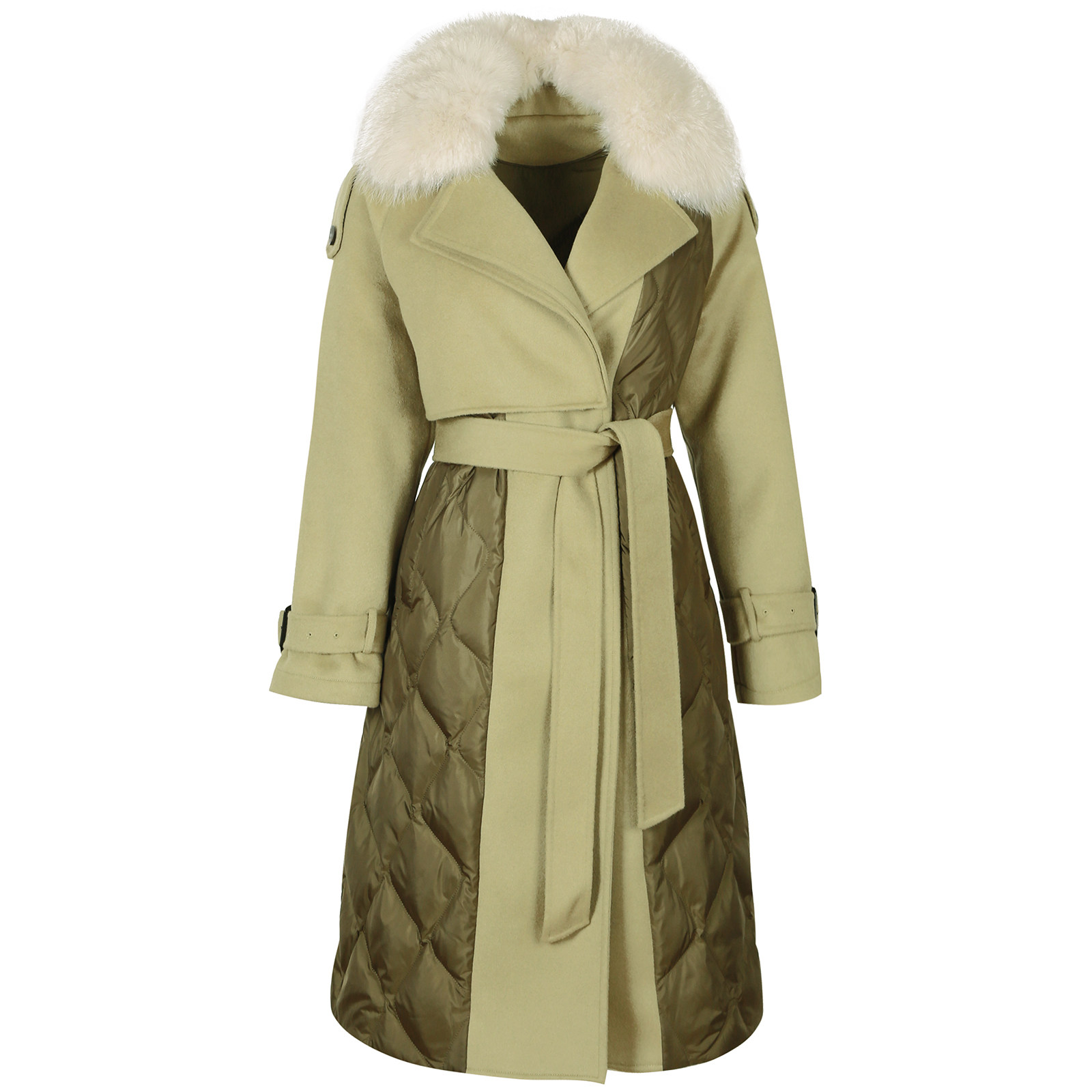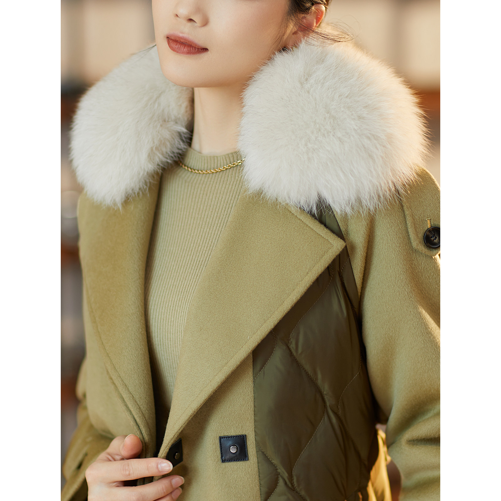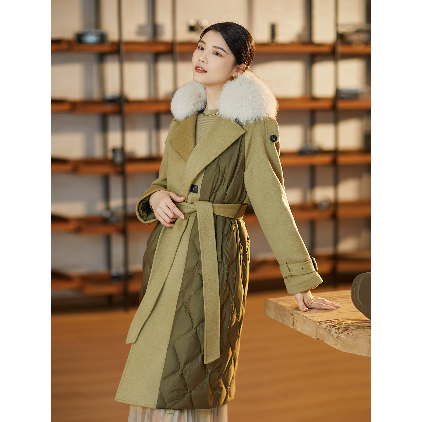 【毛领鹅绒服】BBLLUUEE/粉蓝衣橱商场同款冬装鹅绒拼色长外套女