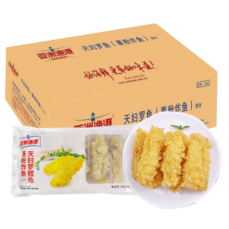 亚洲渔港天妇罗鳕鱼400g*15袋整箱冷冻日式裹粉油炸鱼排海鲜商用