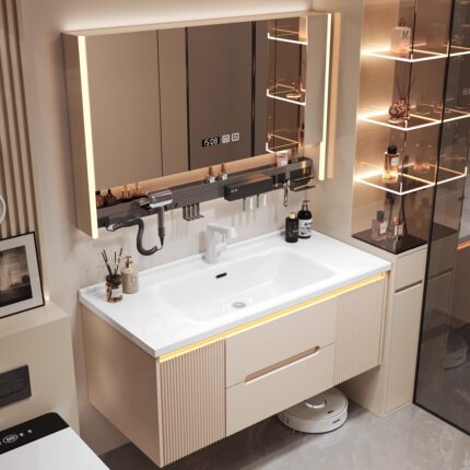 实木奶油风浴室柜组合