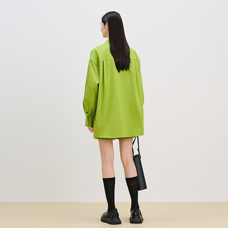 【轻松套装】AUM噢姆秋季可拆卸领多穿衬衫上衣休闲宽松短裤女款