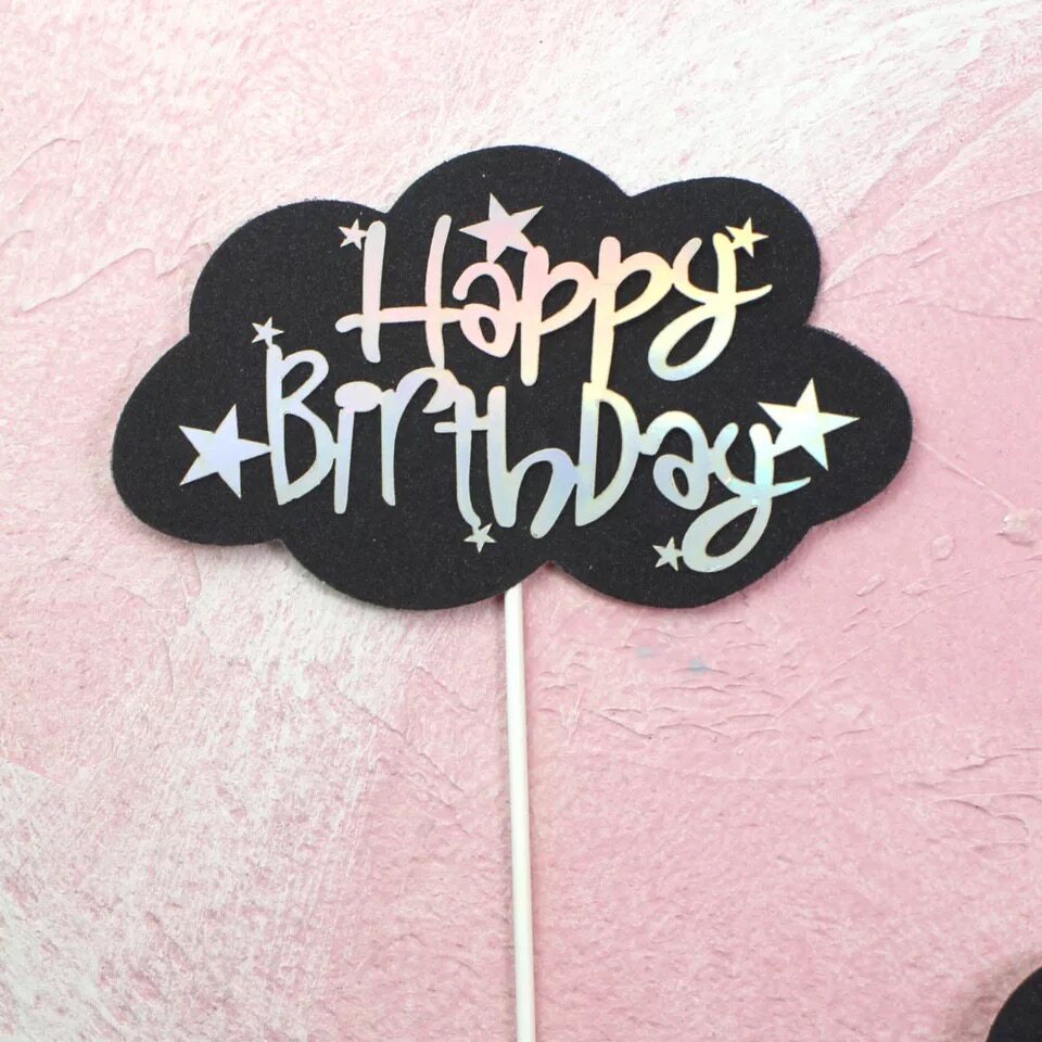 ins冷淡风蛋糕装饰插牌黑色云朵金字生日快乐甜品台插件烘焙插旗