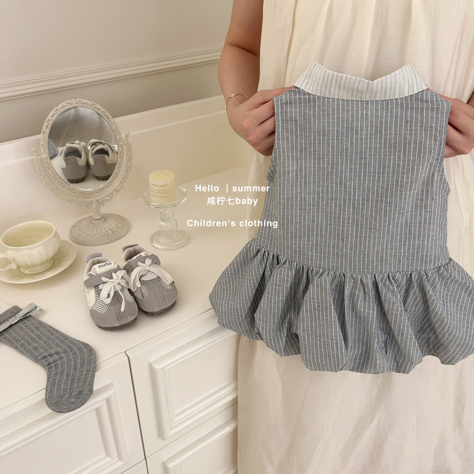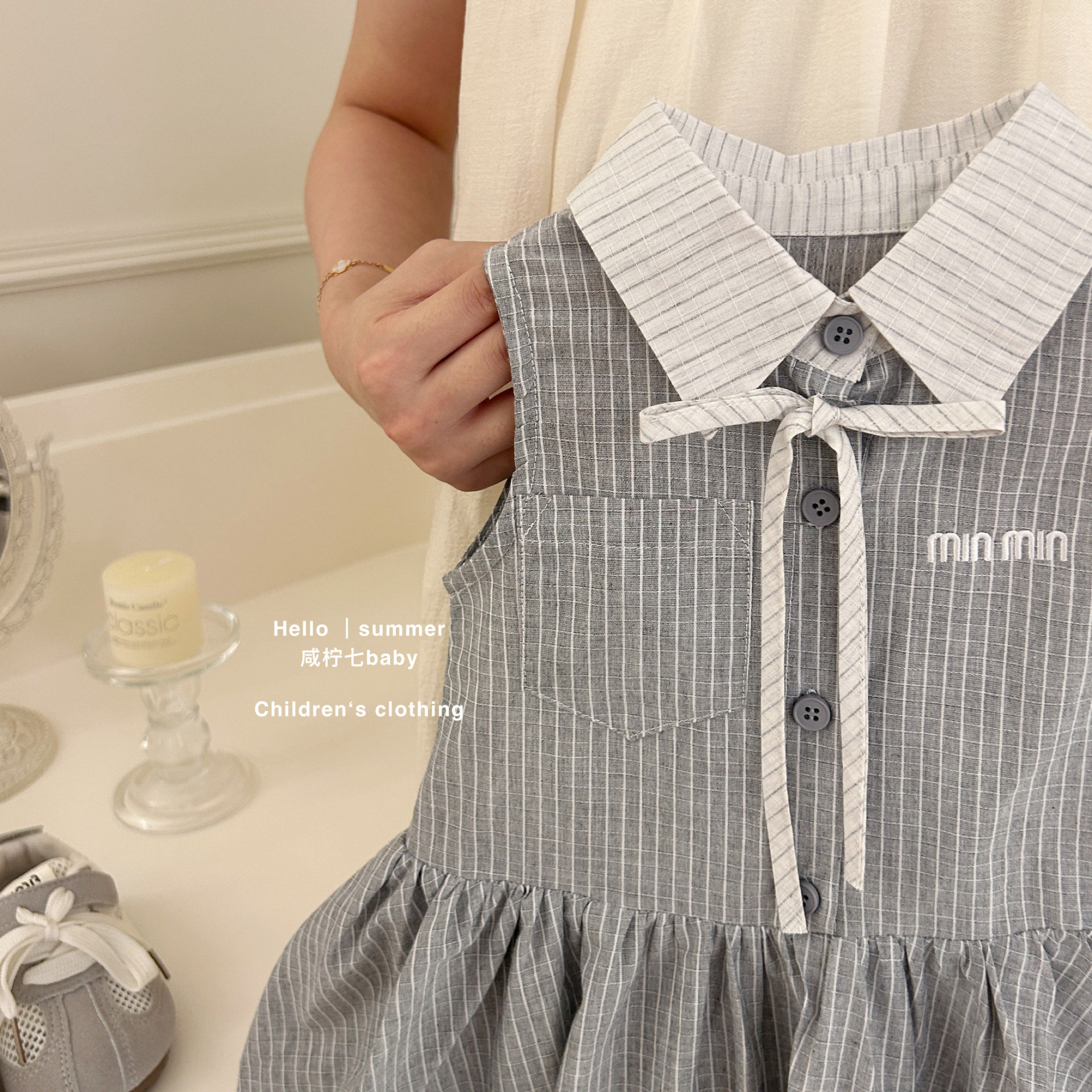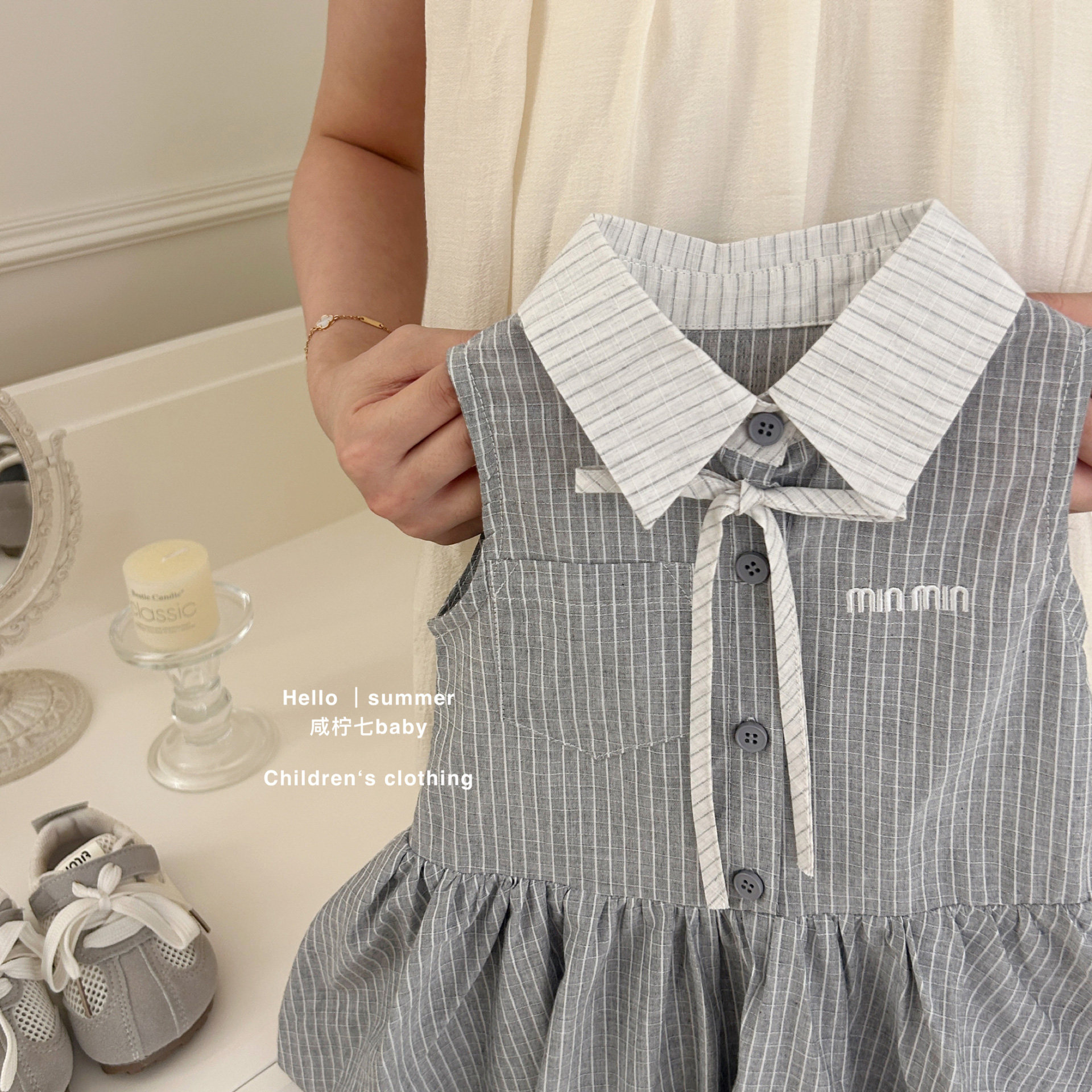 【咸柠七】原创miu系学院风!女童夏装背心裙女宝宝连衣裙条纹裙