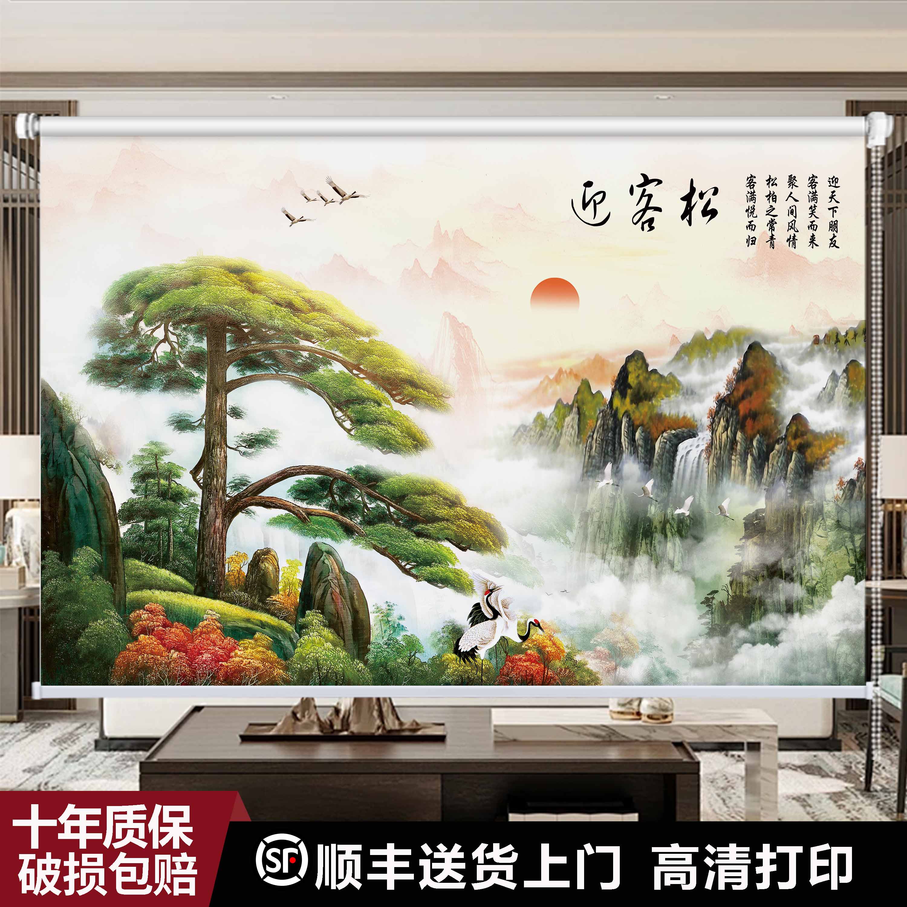 定制窗帘新中式山水字画遮阳防水卷帘办公室客厅书房茶室风景挂画