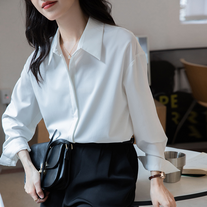 气质长袖职业面试通勤白色衬衫
