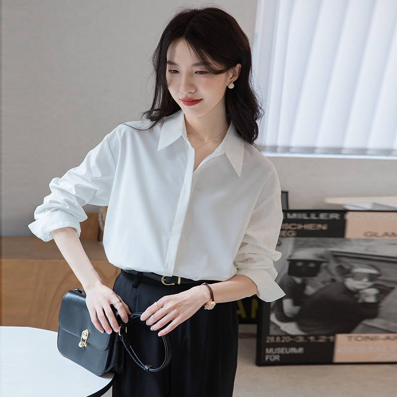 秋装新款内搭叠穿衬衣通勤白色衬衫女气质长袖衬衣职业面试上衣女