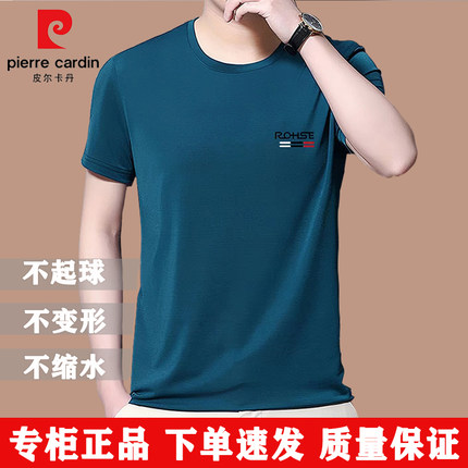 皮尔卡丹中年男士短袖t恤夏季薄款圆领宽松速干冰丝半袖体恤上衣.