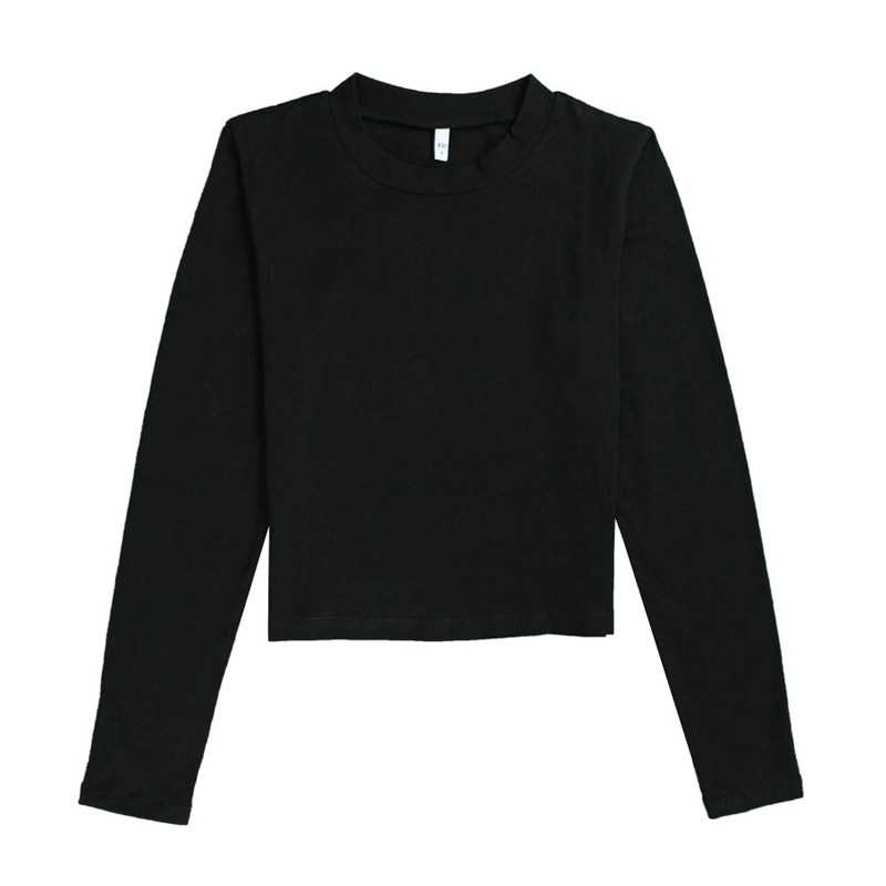2025秋冬甜酷辣妹露脐短款打底衫磨毛加厚长袖t恤女紧身圆领上衣