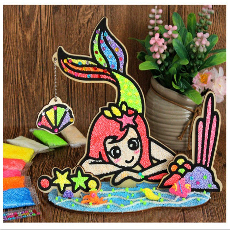儿童3D立体木板画 diy手工制作益智雪花泥珍珠泥粘土画彩泥黏土画