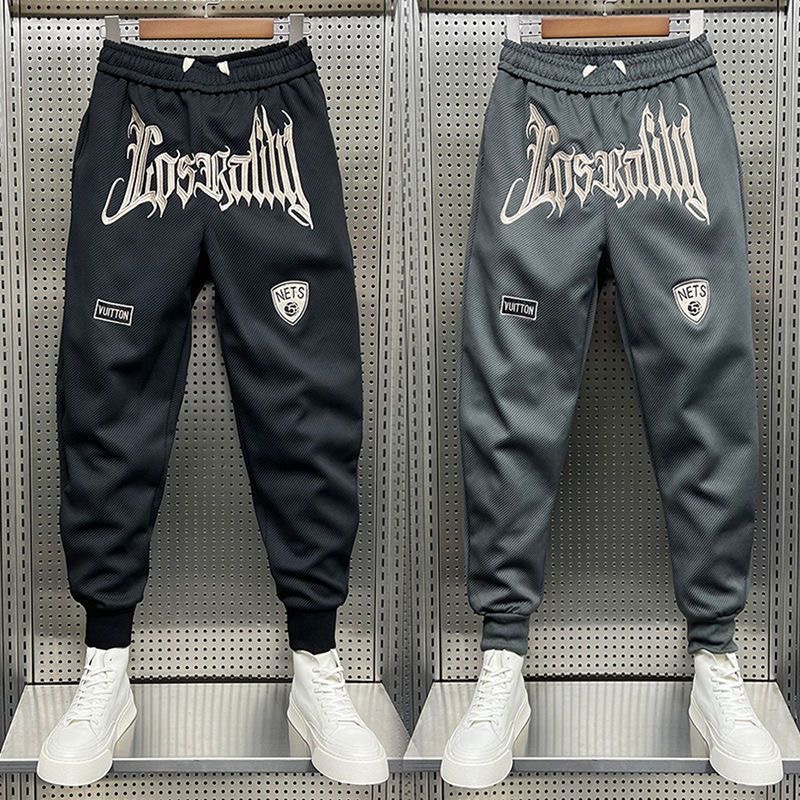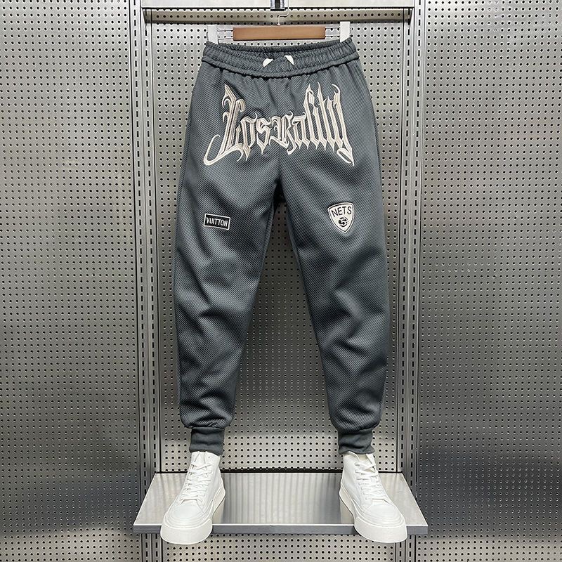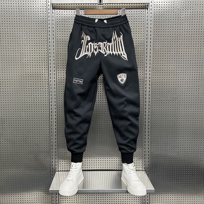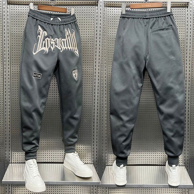 美式条纹束脚工装裤男秋季新款刺绣字母哈伦裤青年宽松休闲运动裤