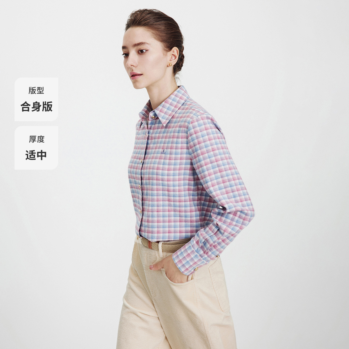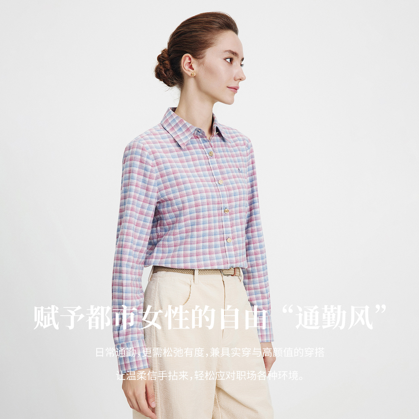 Navigare意大利小帆船精梳棉长袖衬衫女士秋季新款通勤风格子上衣