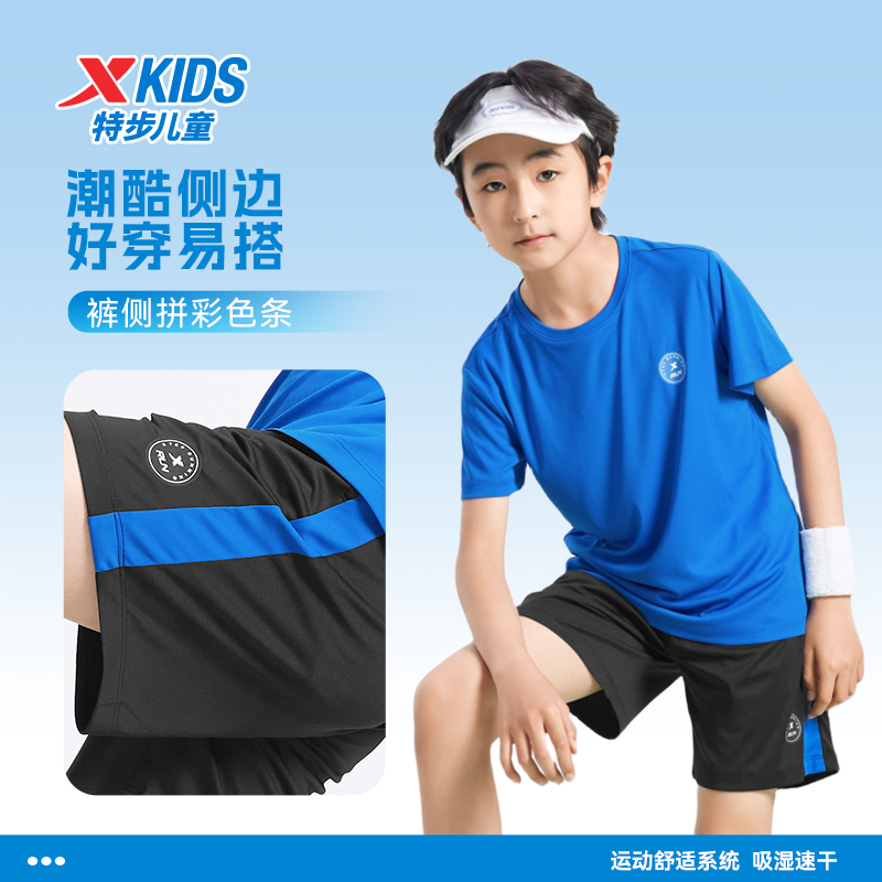 特步童装男童短袖套装夏季新款大童运动服小童两件套儿童速干短t