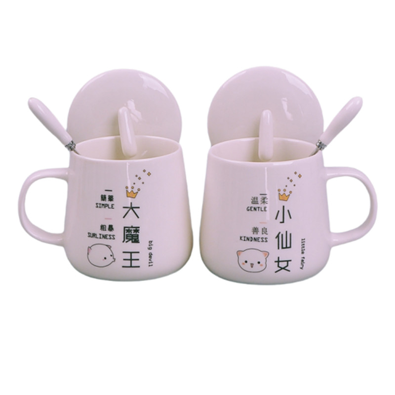 陶瓷马克杯带盖勺可爱情侣女对杯创意牛奶杯暖暖杯55度恒温杯水杯