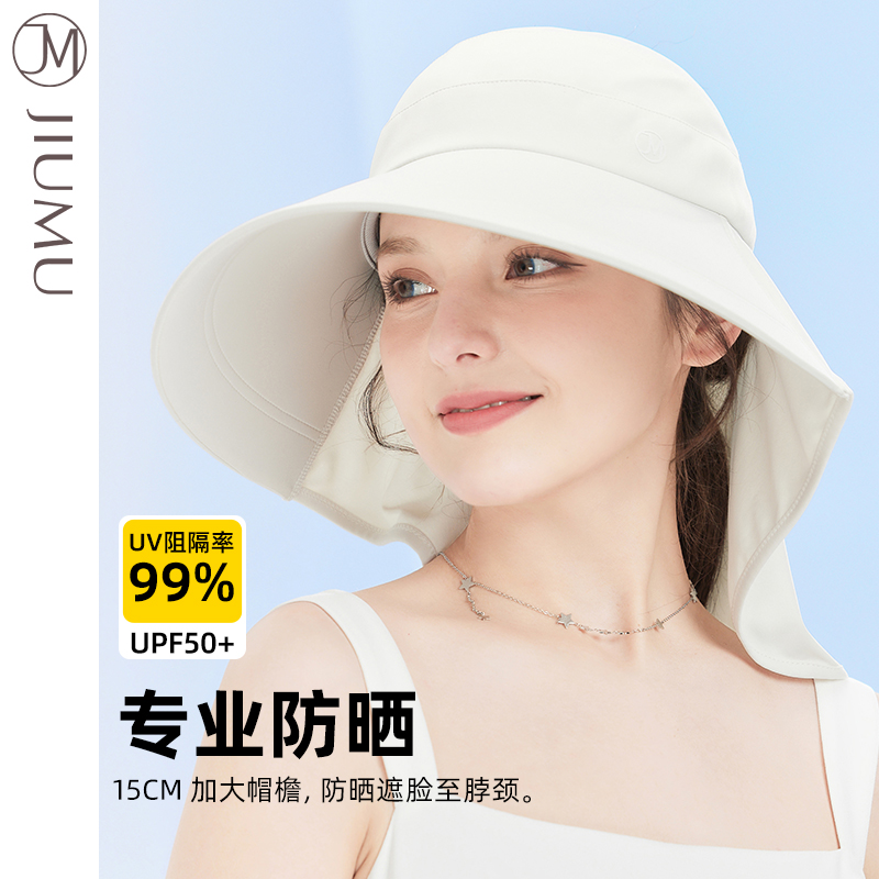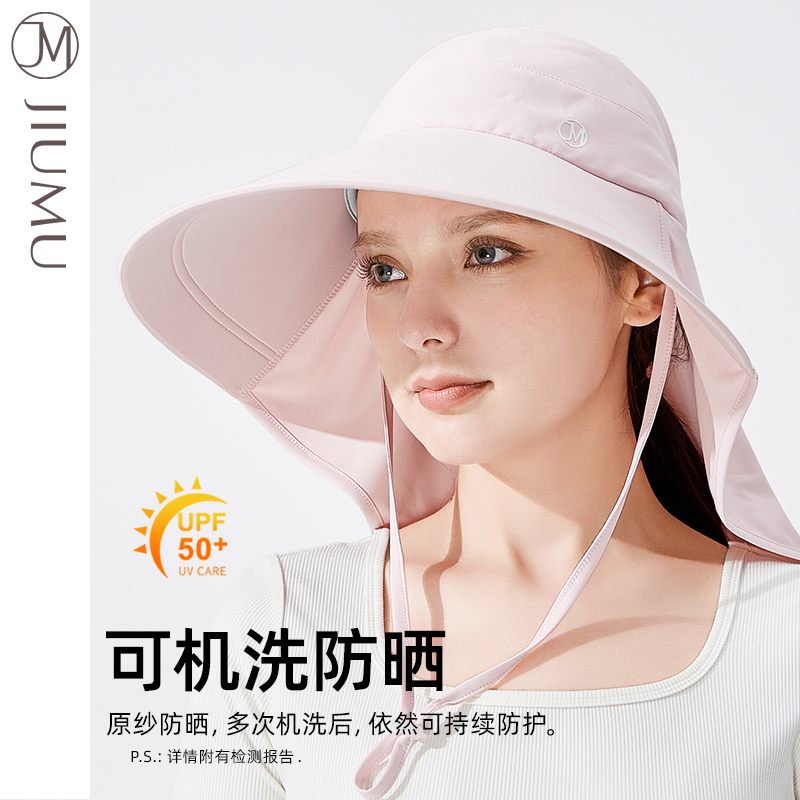 玖慕全方位防晒帽女夏大檐防紫外线遮脸护颈面罩空顶遮阳太阳帽子