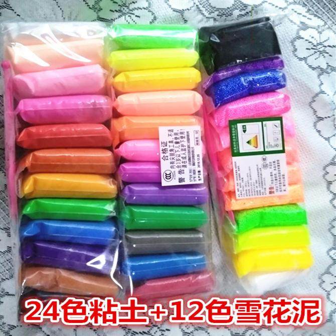 雪花泥黏土24色无毒珍珠泥雪花泥超轻粘土彩泥橡皮泥3d创意DIY儿