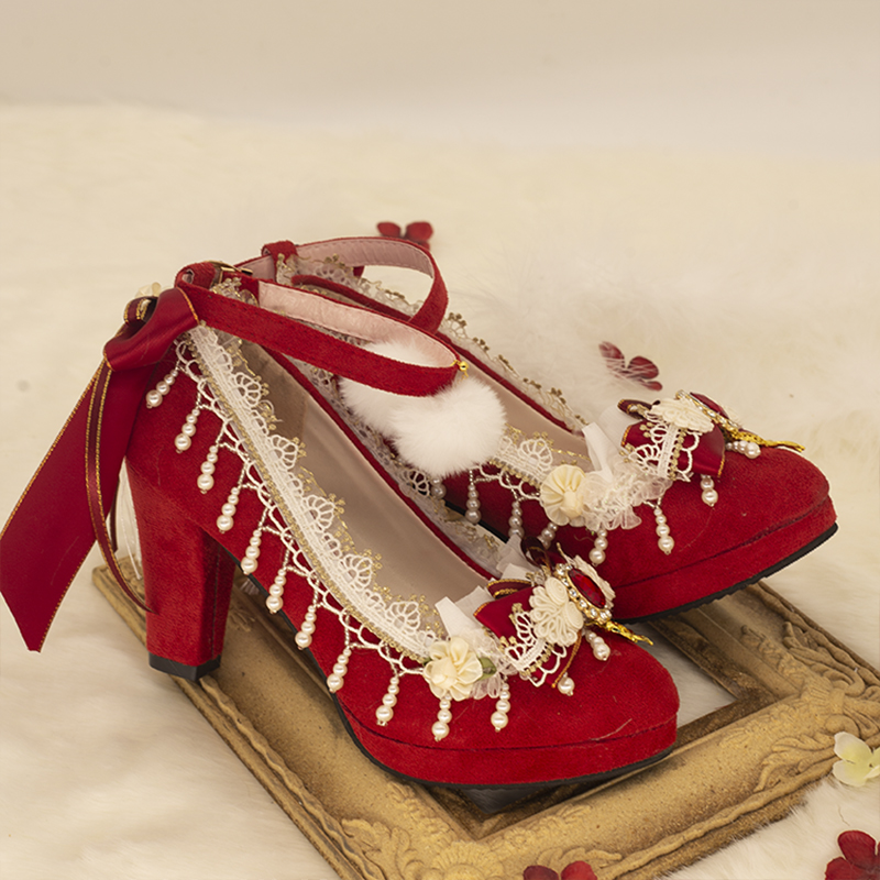 [中国娃娃]六芒星原创lolita手作lo鞋小瑞虎新年红色中华风高跟鞋