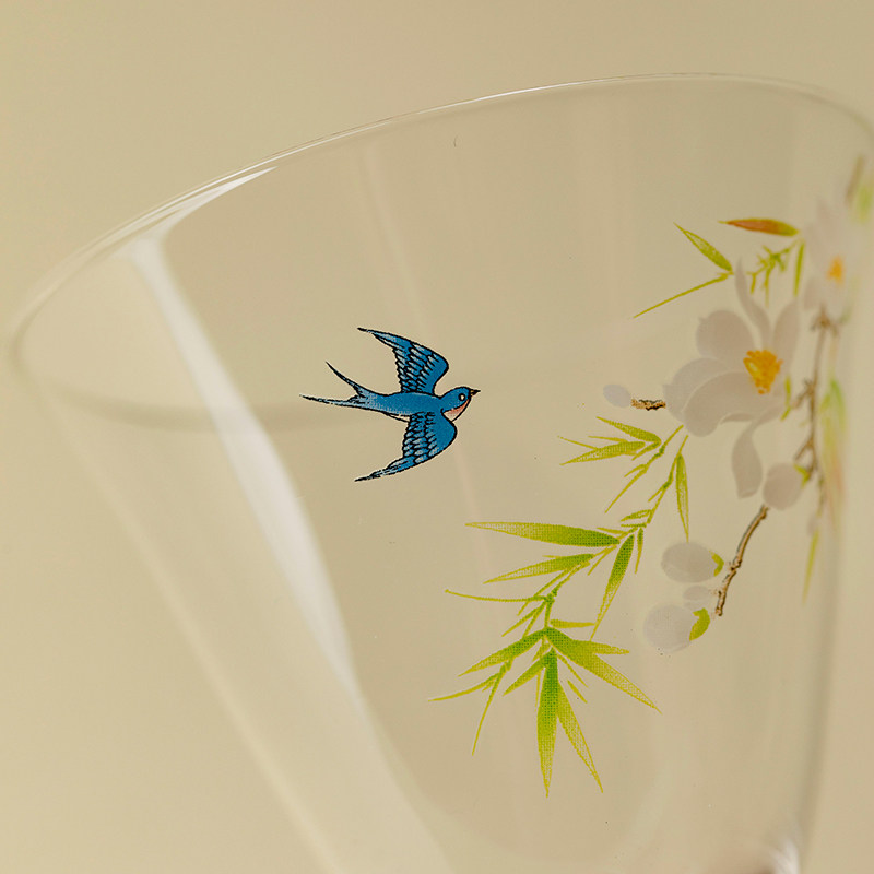 里作 燕归来玻璃高脚茶杯精致耐热加厚玻璃杯绿茶专用家用主人杯