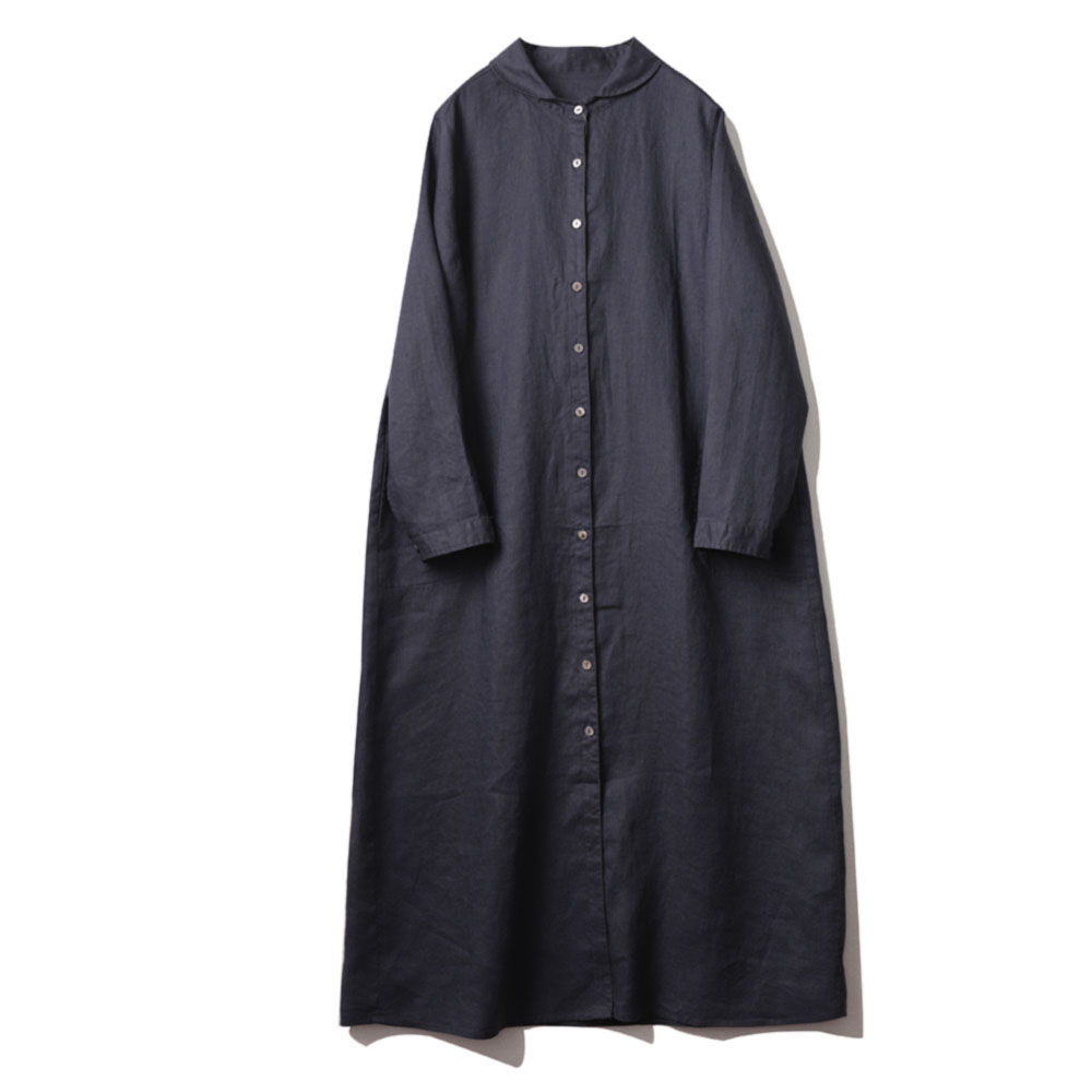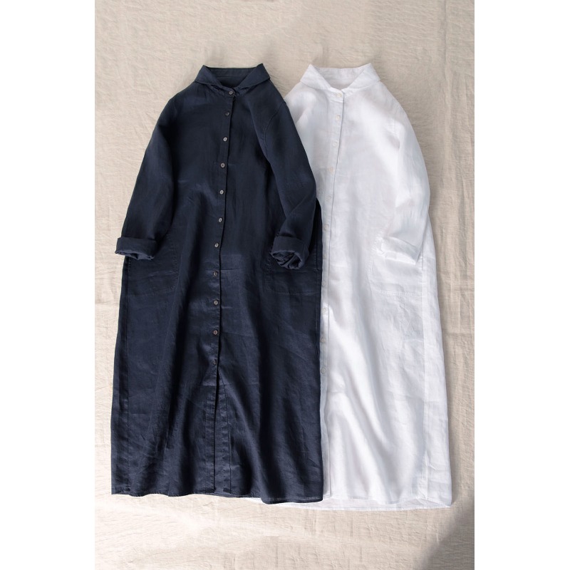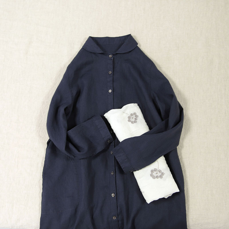 原单外贸出口森女日系棉麻连衣裙长款减龄娃娃领纯色开衫衬衫裙子