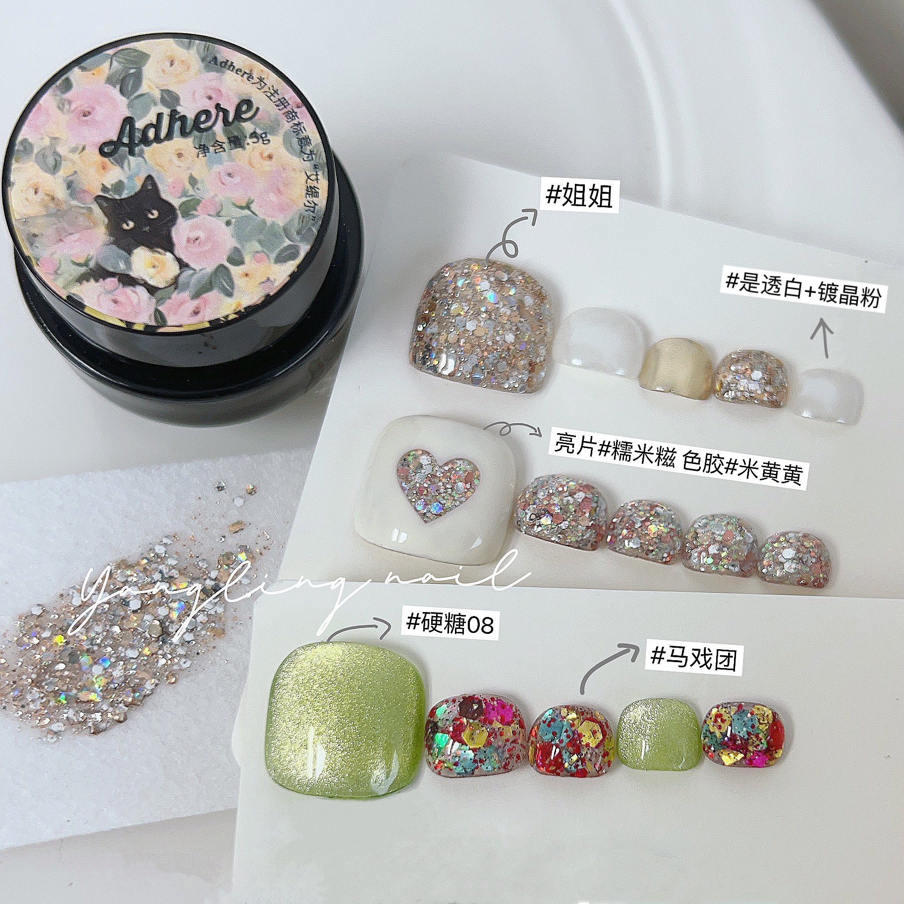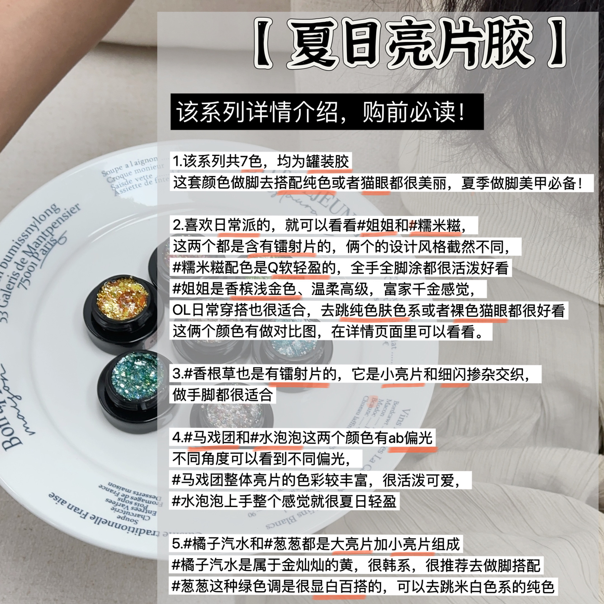 燕翎夏日亮片胶超薄欧泊韩式大亮片香根草糯米糍水泡泡罐装甲油胶