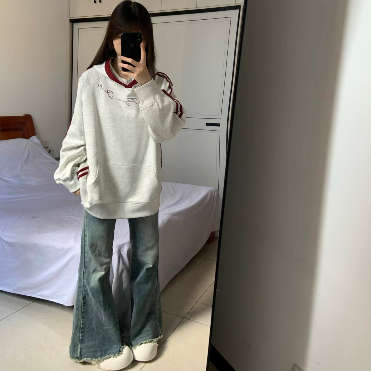 美式高街复古撞色条纹连帽卫衣女秋冬加绒学院风宽松情侣小众外套