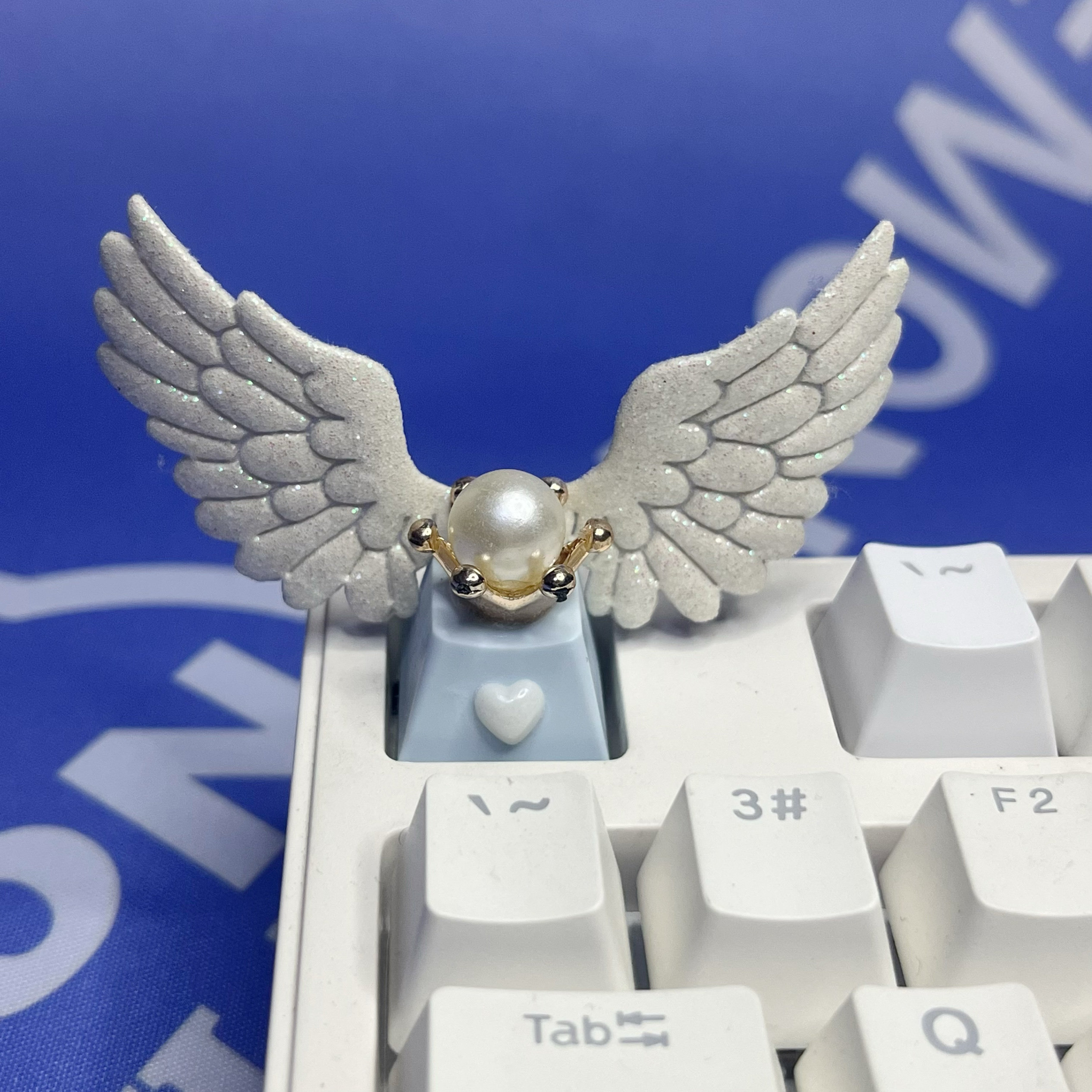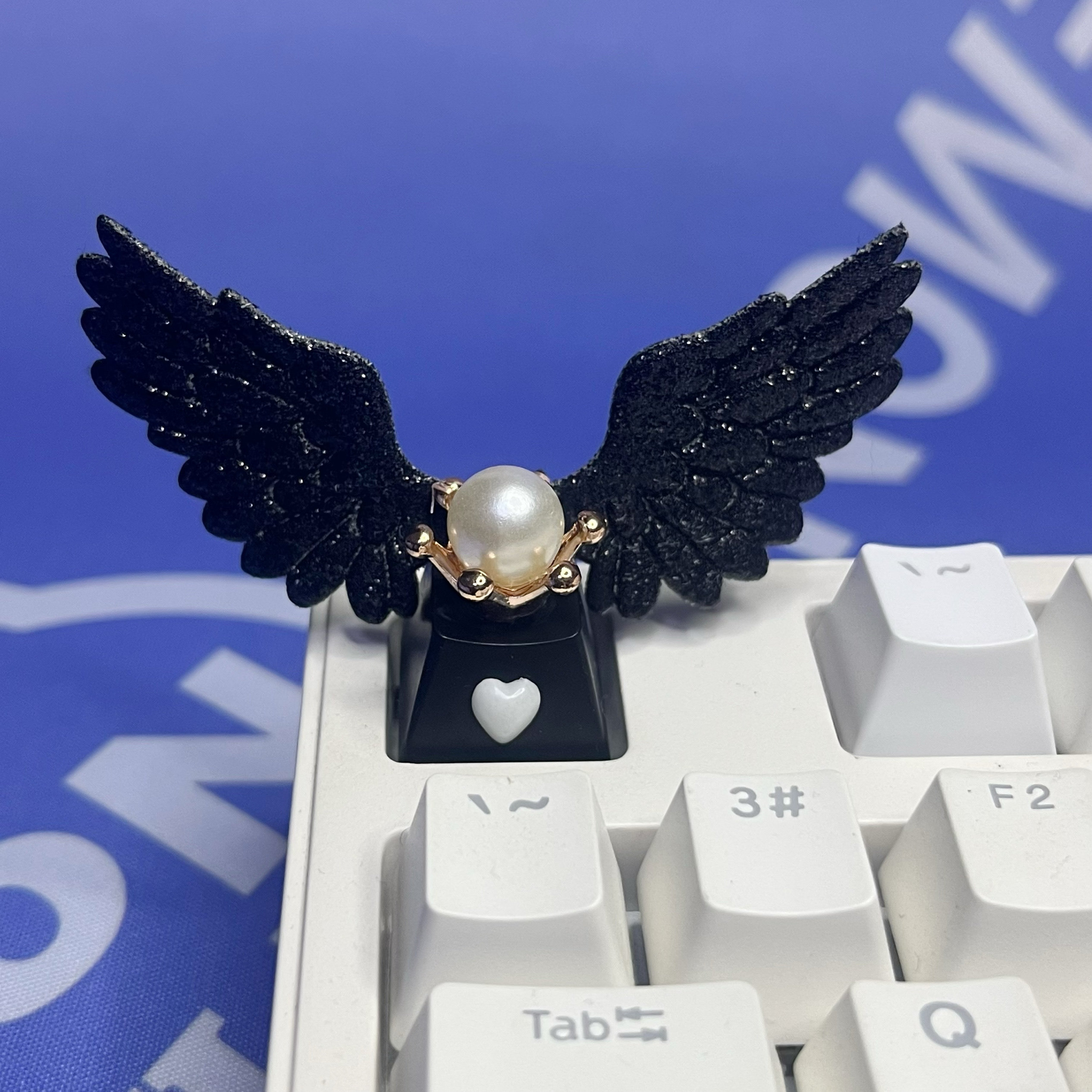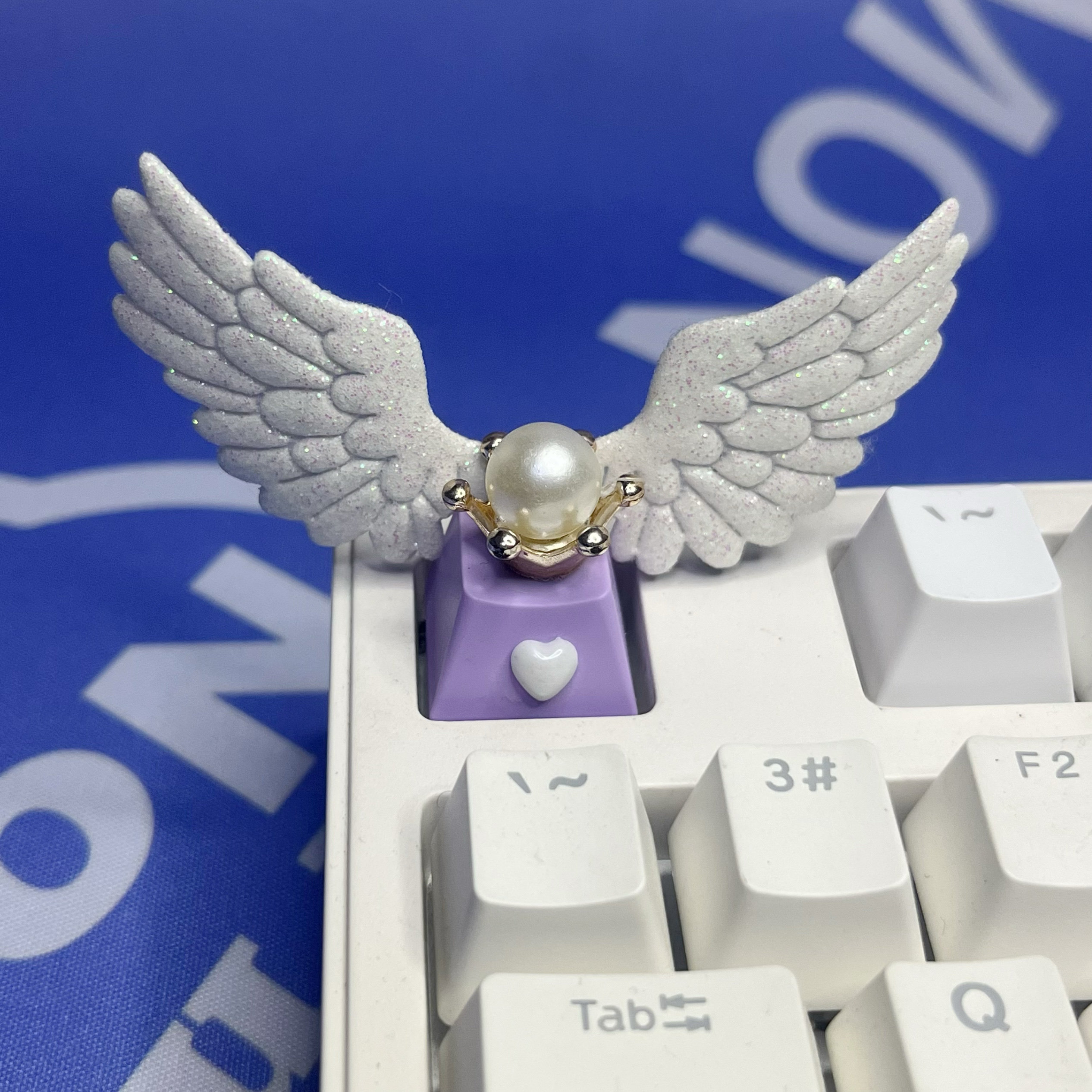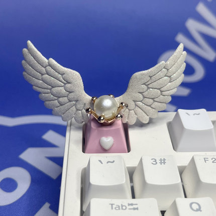 个性美少女皮质亮闪天使翅膀透光可爱女生礼物机械键盘粉色心键帽