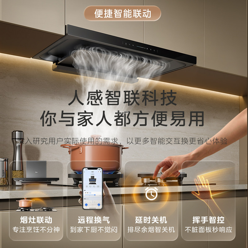 美的抽油烟机家用厨房大吸力顶吸式智控挥手欧式烟机官方旗舰店