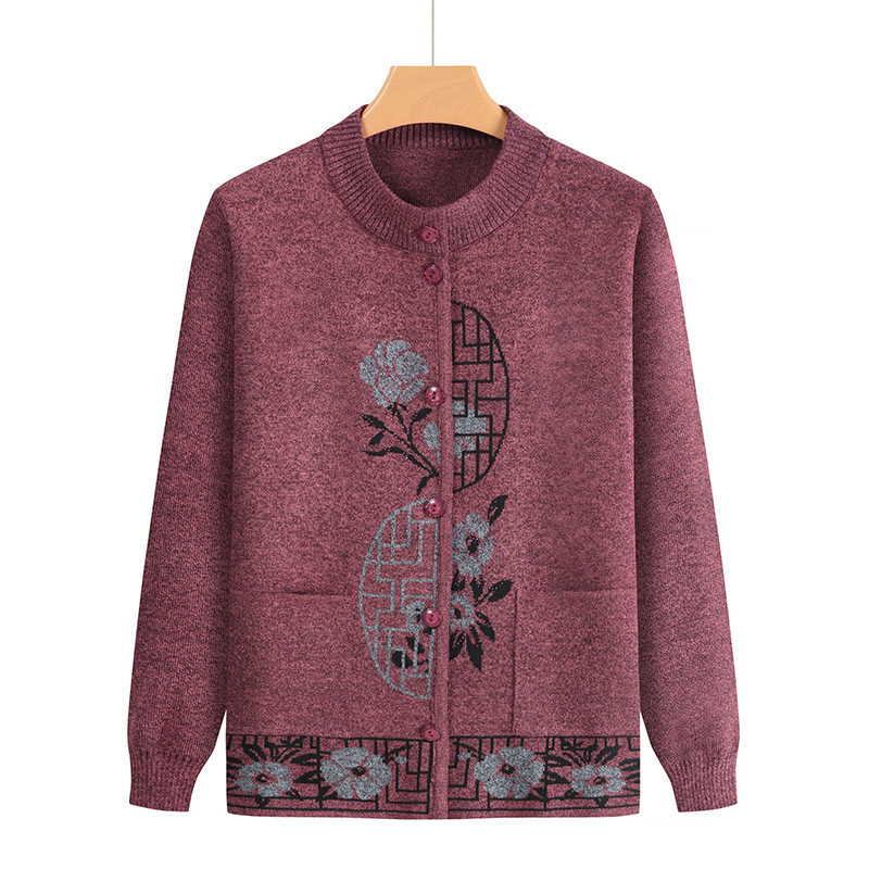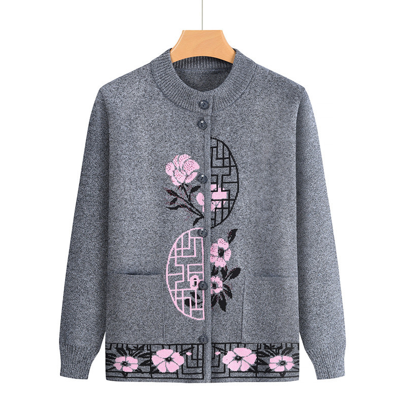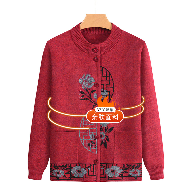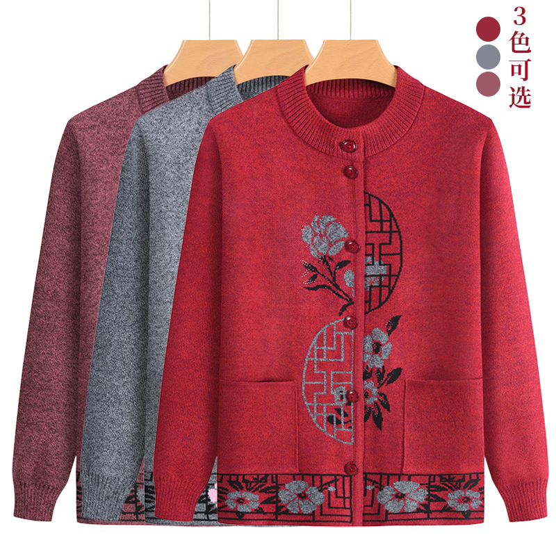 源头工厂中老年秋冬奶奶装衣服开衫针织衫毛衣上衣妈妈老人衣服女